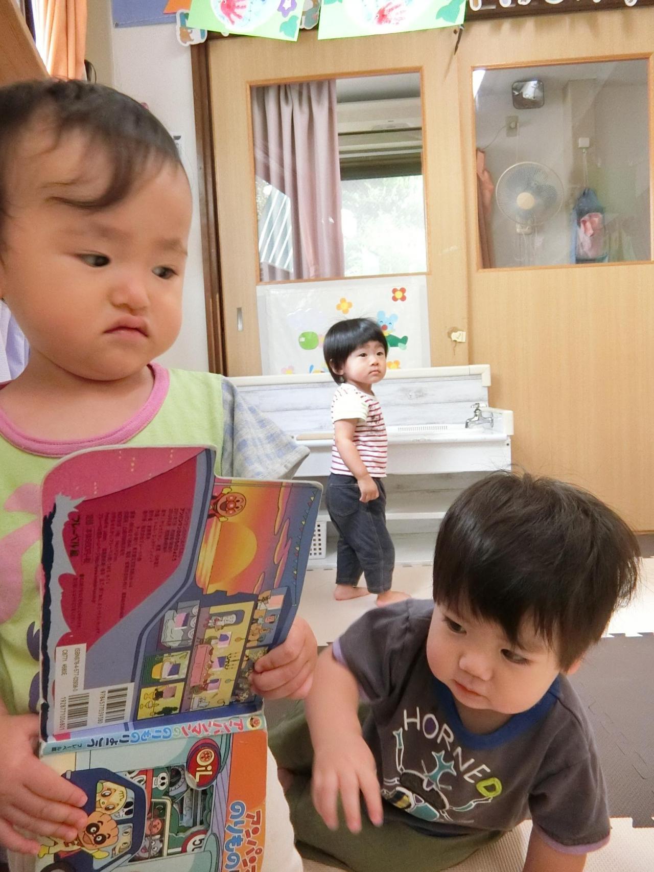 実はこのアンパンマンの本も2冊あって、このあともう1冊だしたら、二人とも自分のアンパンマンの本を大事そうに抱えて喜んでいましたよ♪