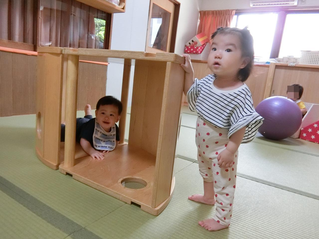 最近、和室では、マルチーズという下↓の写真に登場する木製大型遊具やボール、押し箱、体操など、色々な遊びを楽しんでいます😄❗
