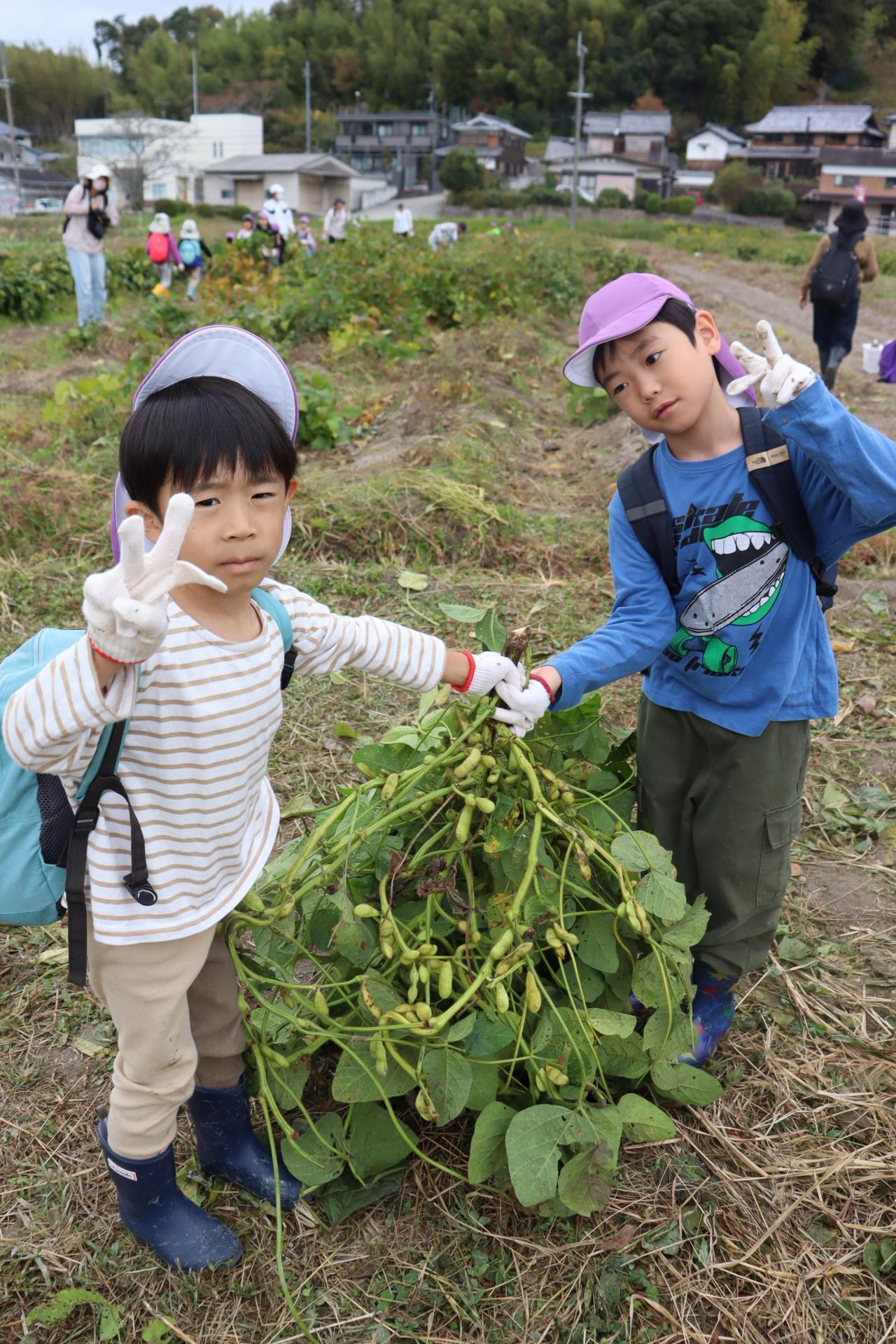 芋ほりの前にまずは枝豆摘みをしました👏!