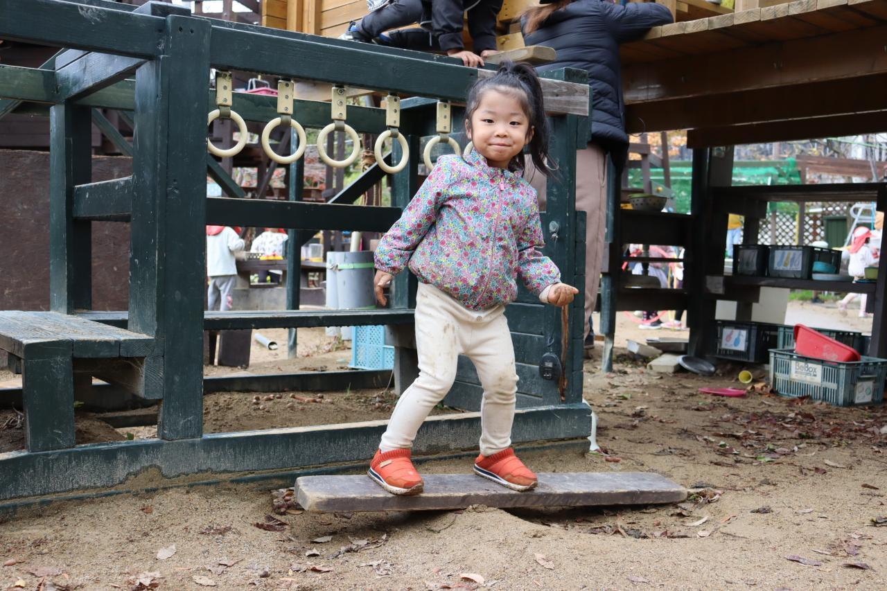 「見て~!」と振り返ると、かわいいシーソーが出来上がっていました♬