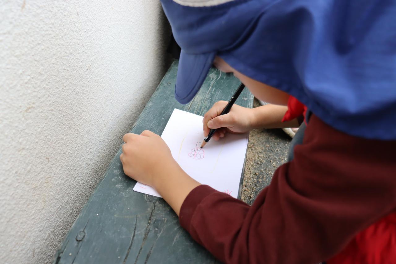 ぐりぐら園庭では、熱心にお絵かきをするお友だちの姿が。