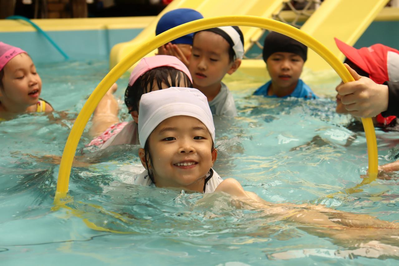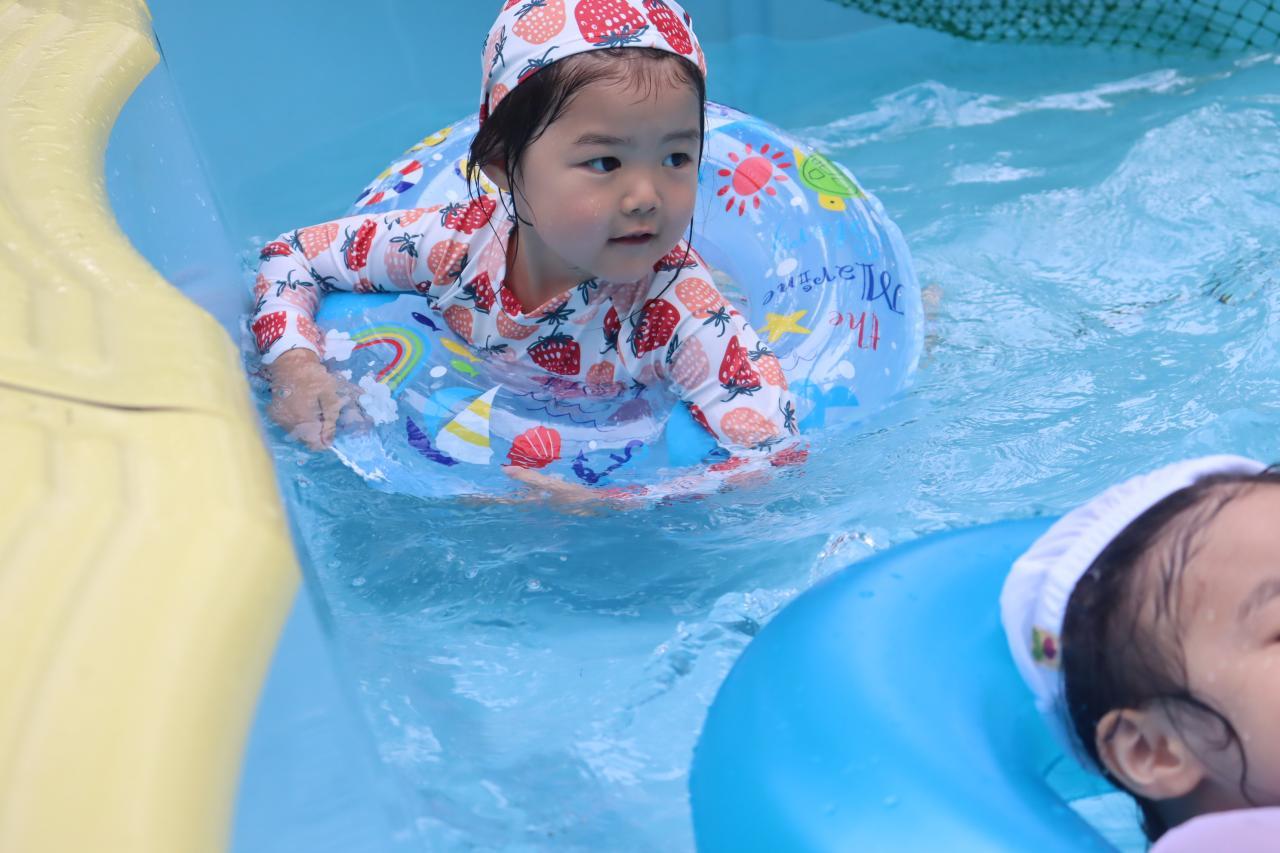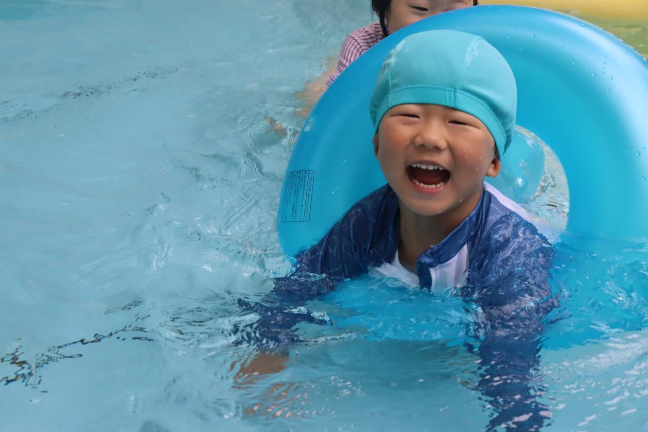 「貸~し~て。」とお友だちと貸しあう経験もしながら、浮き輪での遊びを楽しんでいましたよ♪