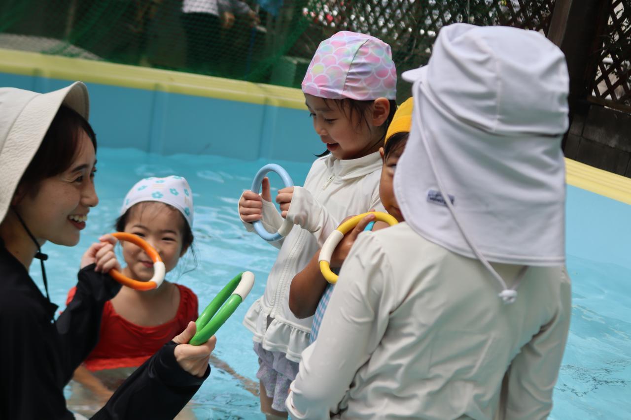 お化粧遊びをして身体に水が慣れてきたところで、リング集めをしました(^^)