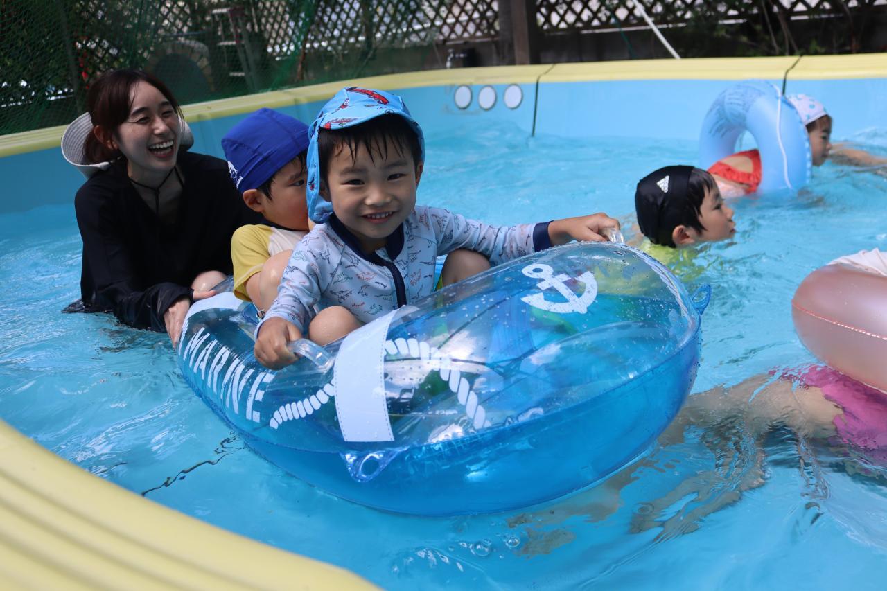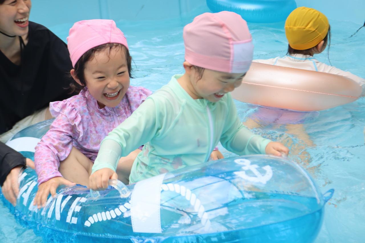 きりんさんにも、浮き輪やボートでお楽しみ時間(^^♪