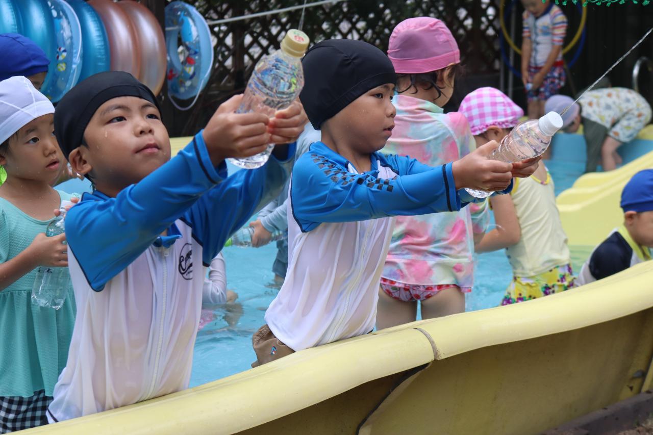 はなみずきはうすやプールの周りのネットについている的や星を狙って、水を出します。
