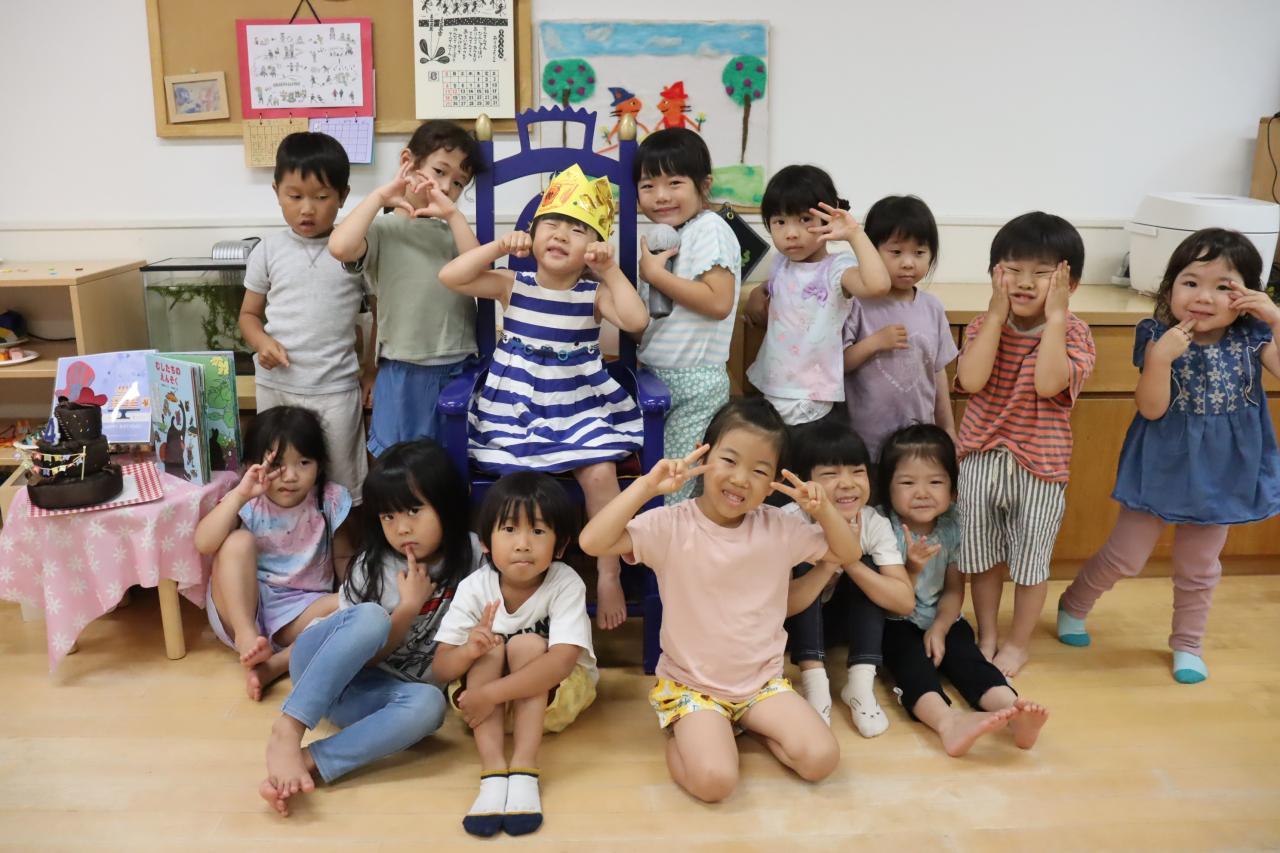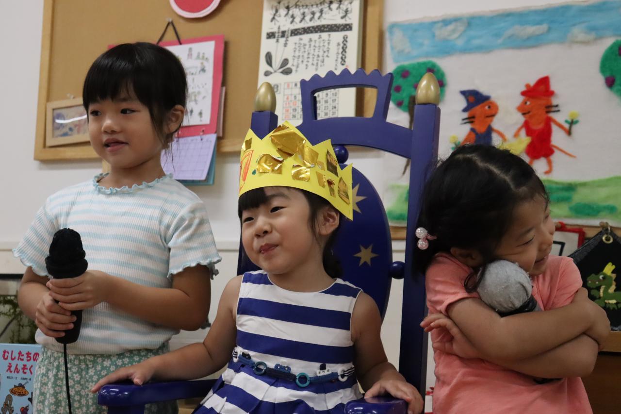 楽しみにしていたお誕生日会、自分で作った王冠をかぶり、しっかりと椅子に座って質問に答えていましたよ✿