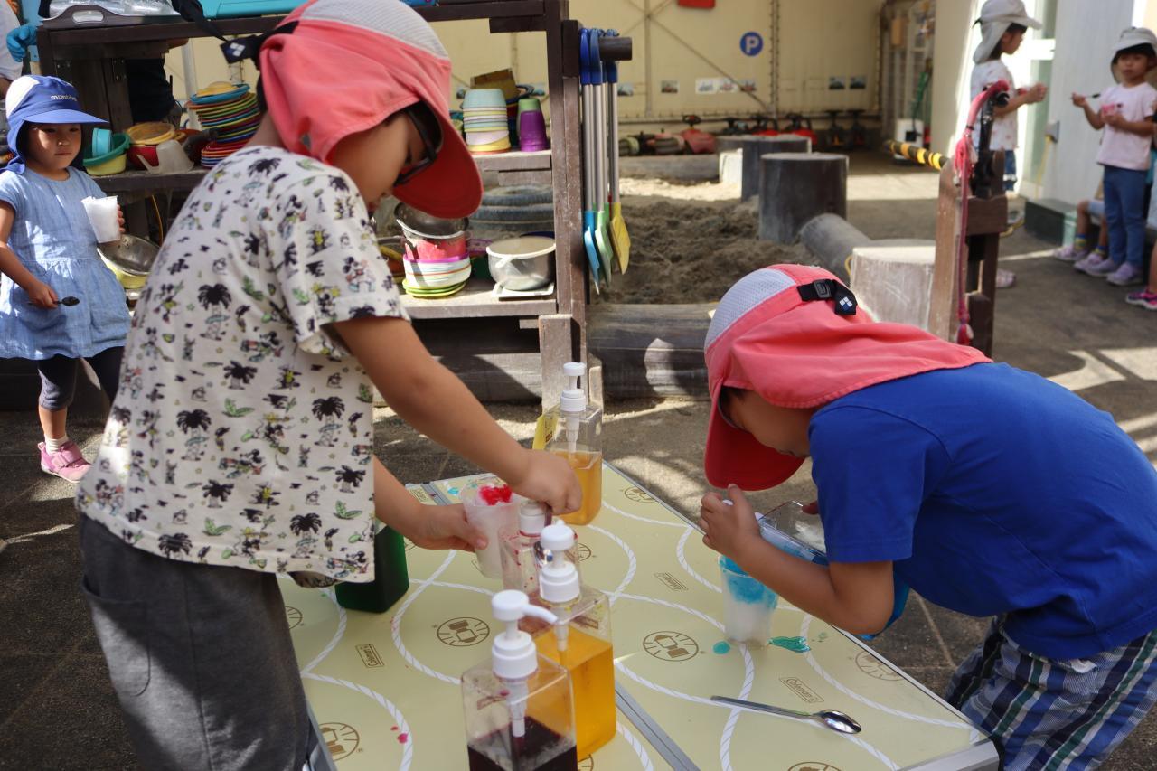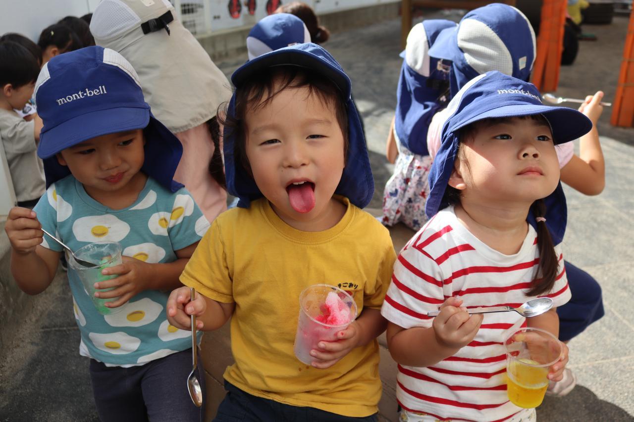 ぐりぐら園庭ではふわふわのかき氷が今日もできていますよー