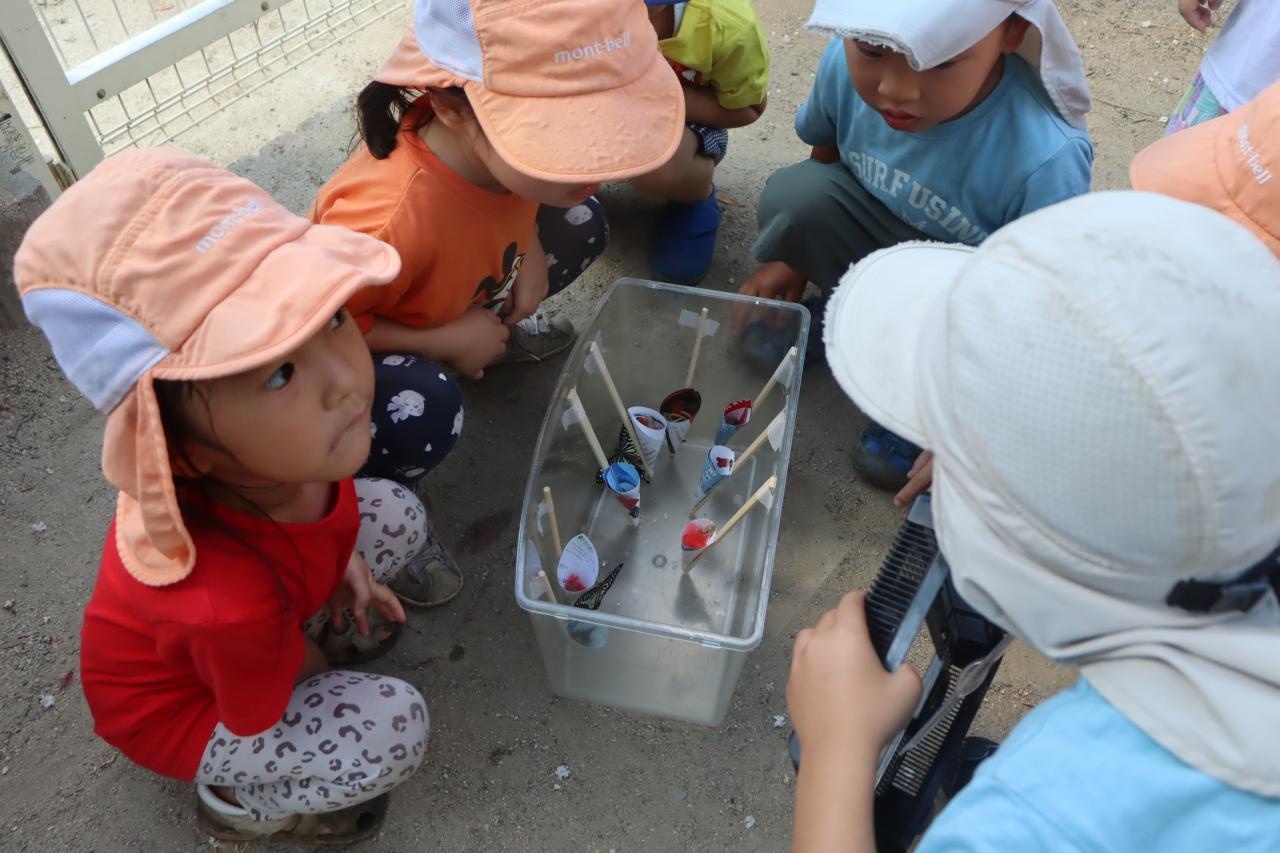 一匹の蝶がなかなか飛ばない様子だったので、「がんばれー!」「こわくないよ!」と応援の声が聞こえてきましたよ(^^♪