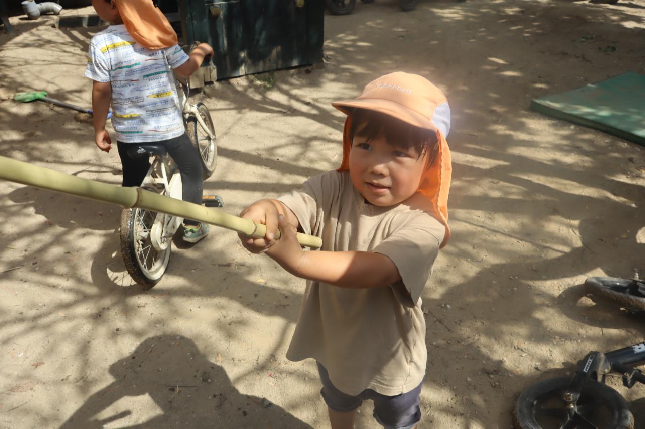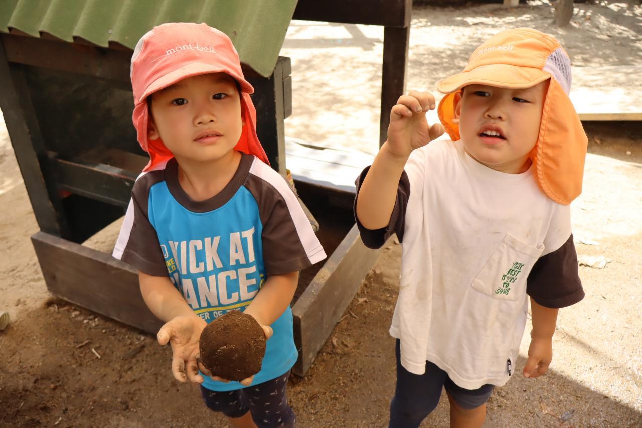 「すなをちょっとずつかけていくんだよ」「みずもね!」と、ポイントを教えてくれました(^^ゞ
