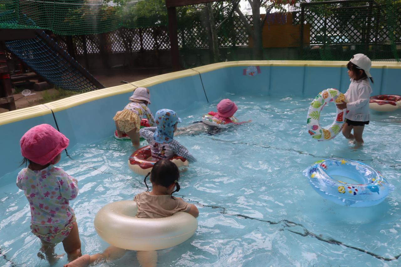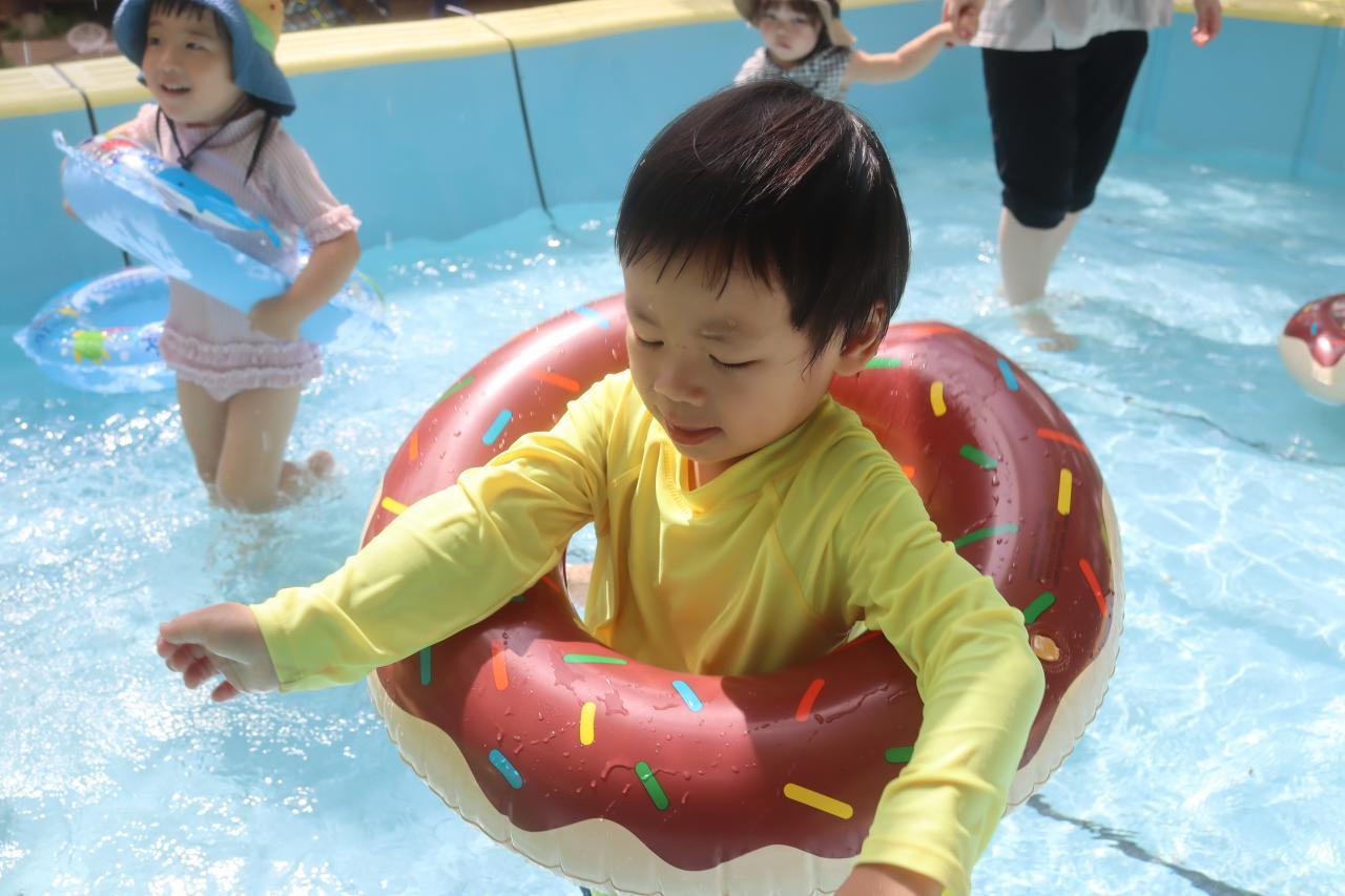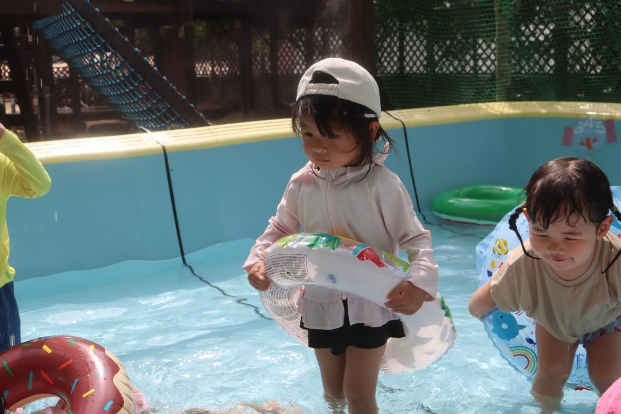 初めて大きなプールに入ったというお友だちも、みんなと一緒なので怖がることなくプール遊びを楽しむことが出来ました✨