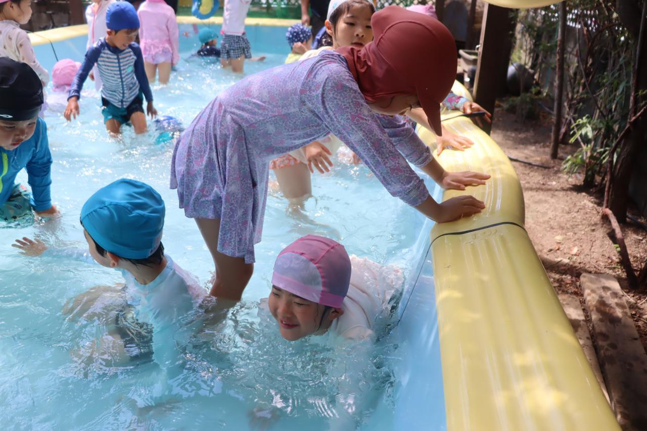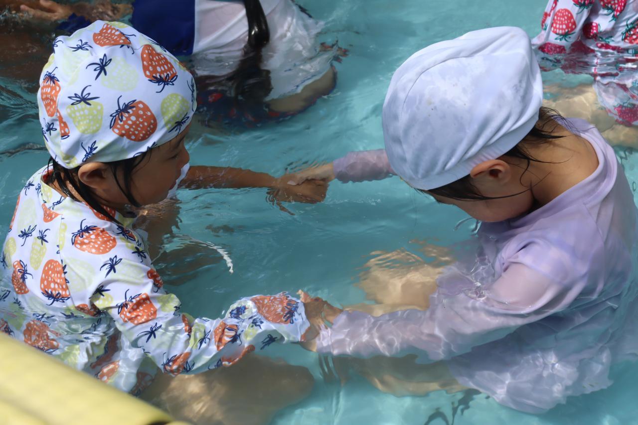 お友だちが何秒つけられるか数えてくれて、なんと7秒水につけられたお友だちもいましたよ👏