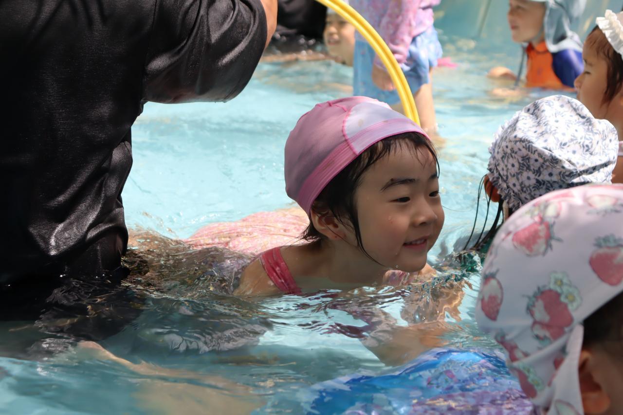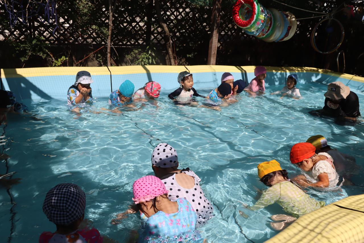次は、何秒顔をつけられるか競争をしました(^^♪ 息を上手に使って、20秒くらいつけられるお友だちもいましたよ!