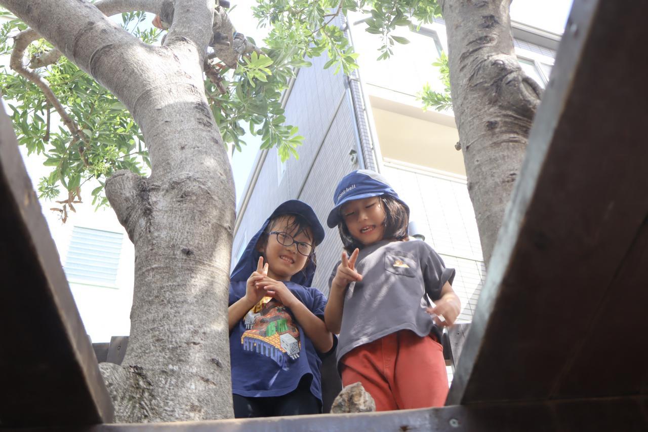 一番上からの景色は、みんながよく見えるので「○○ちゃんやっほ~!」と声を掛けてくれていますよ♡そんなおふたりさんは葉っぱ集めに大忙しだそうです(^^)