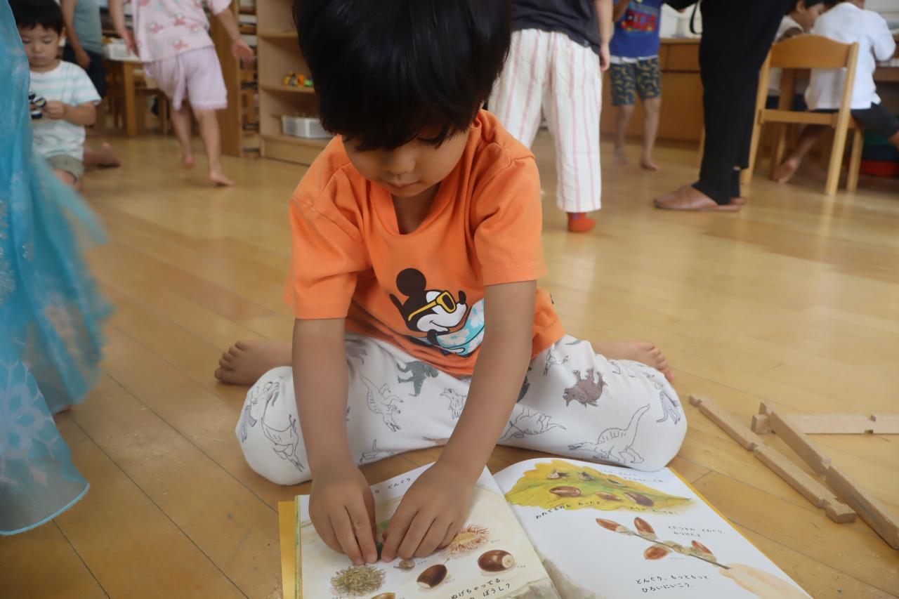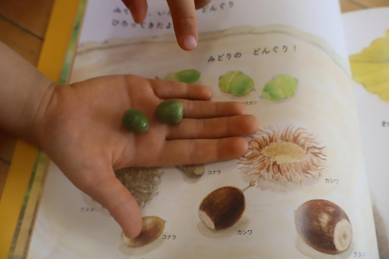 昨日見た『ぴかぴかどんぐり』の絵本と見比べています(*^^*)