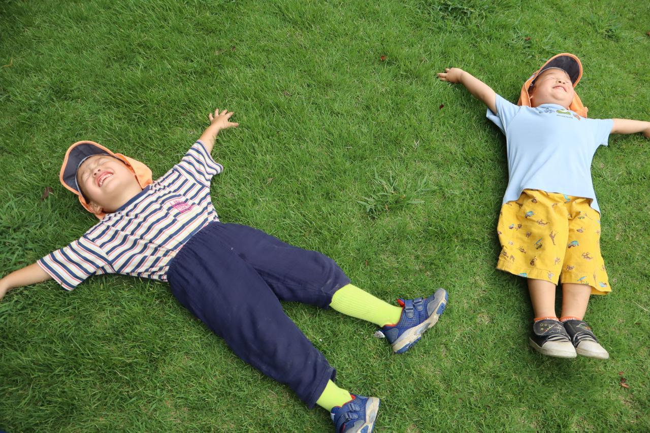 探検の後は、かけっこをしたり、トンボを追いかけたり、芝生にごろーんとする子も(*^^*)♡