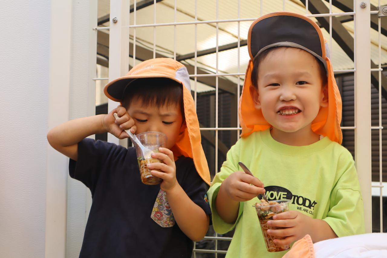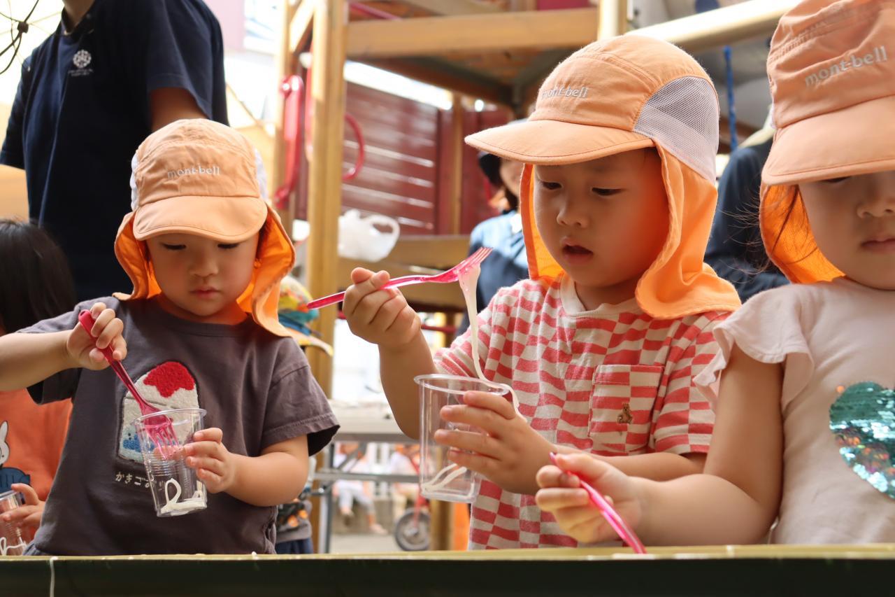 具材を大人に入れてもらう時に「こんなにすくえたよ~!!」と見せてくれるお友だちがたくさんいましたよ♫