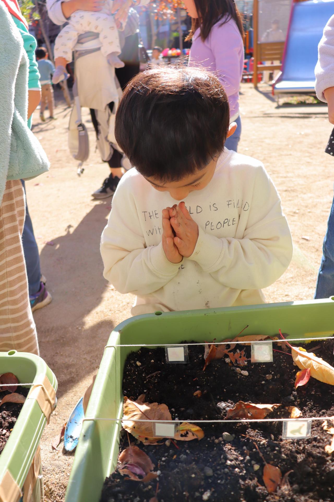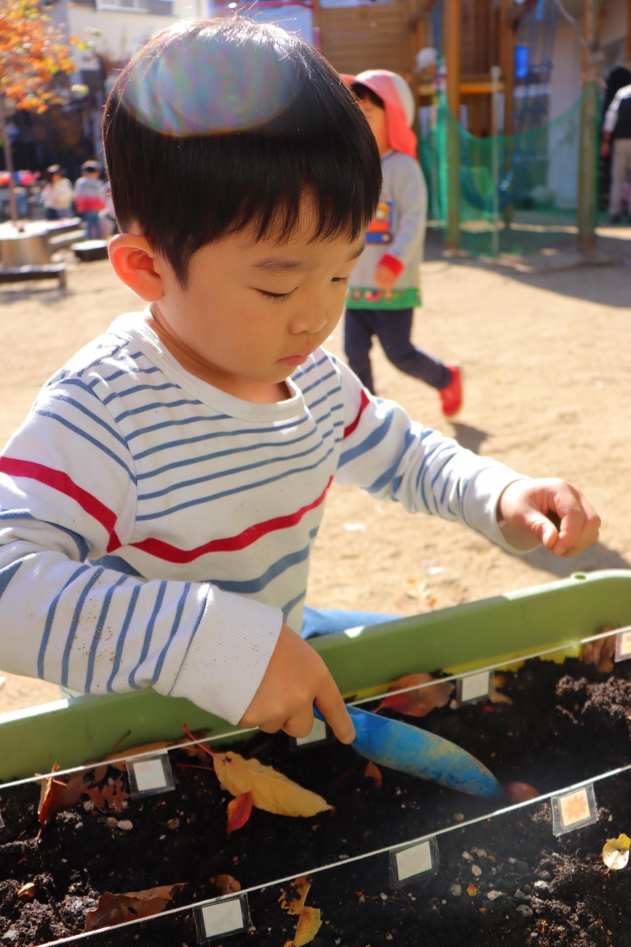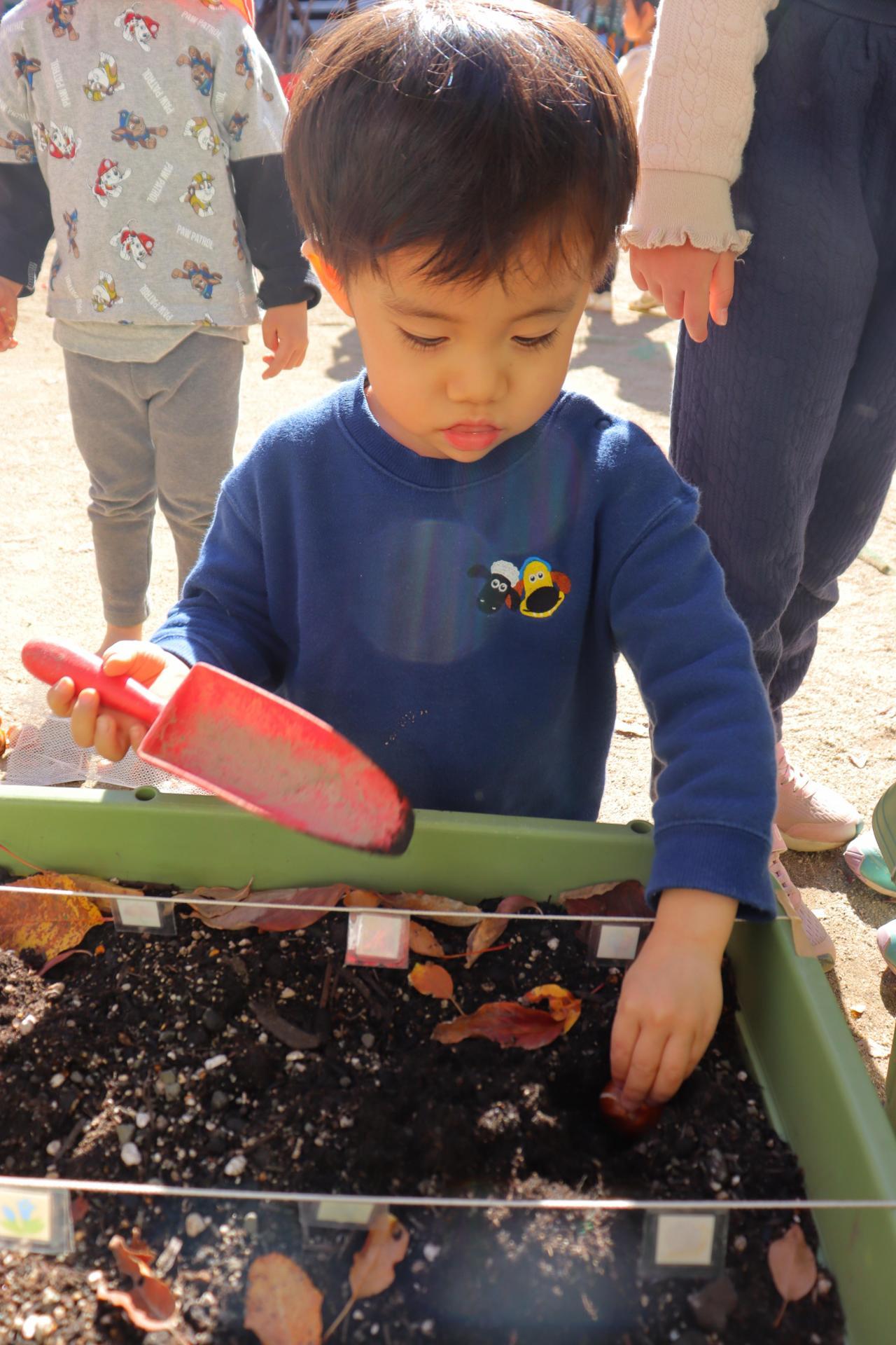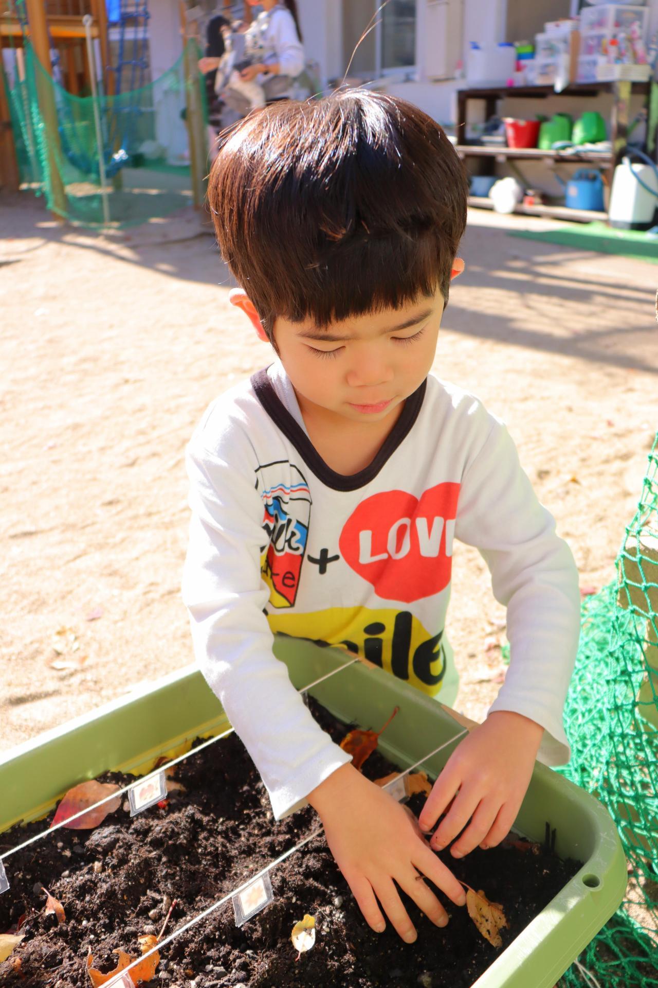 園庭ではチューリップの球根を一人ずつ植えました!
