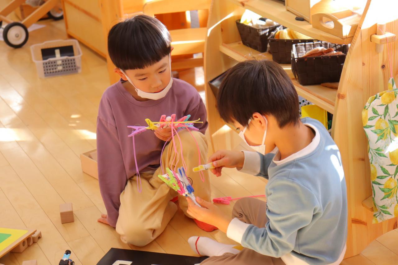 発表も沢山してくれました!お家で手裏剣を作ってきた子、ラキューを組み立てて、セミやトンボを作った子、家の庭でカマキリの卵をとってきて見せてくれた子など、たくさん居ました♪