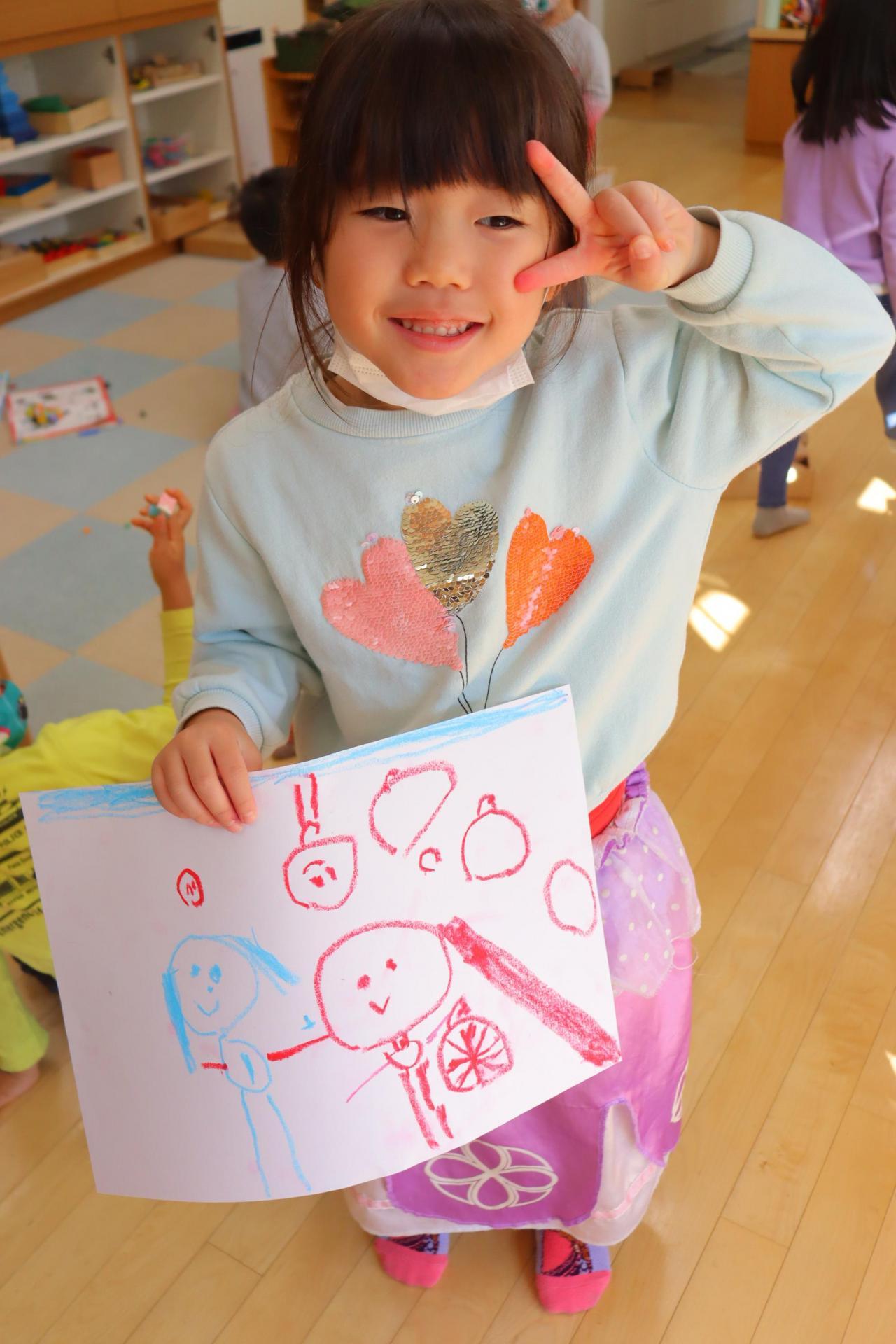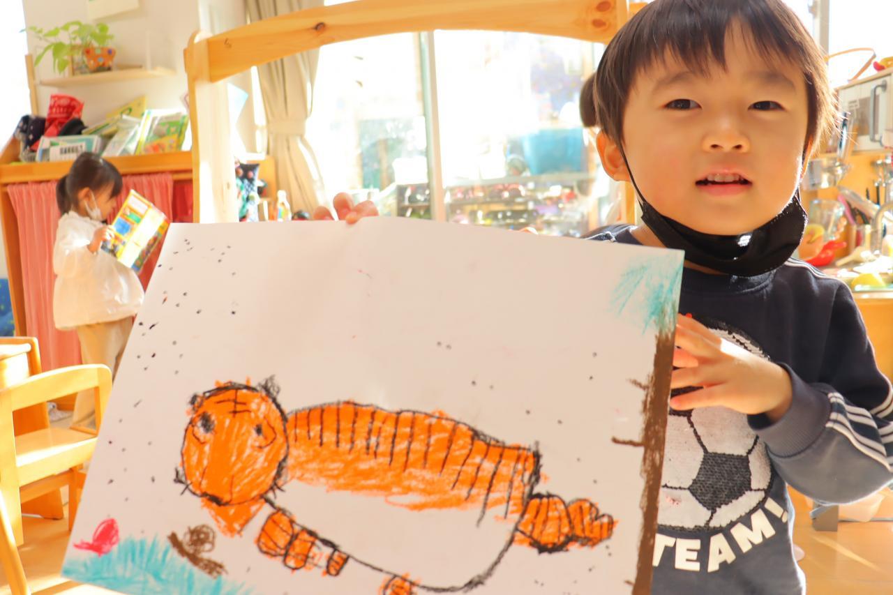 今日もどうぶつ王国の体験画を描いて、「おべんとうたのしかったー!」「おさるさんかいた、だってかわいかったんだもん♡」と楽しかったお話をそれぞれ話してくれましたよ