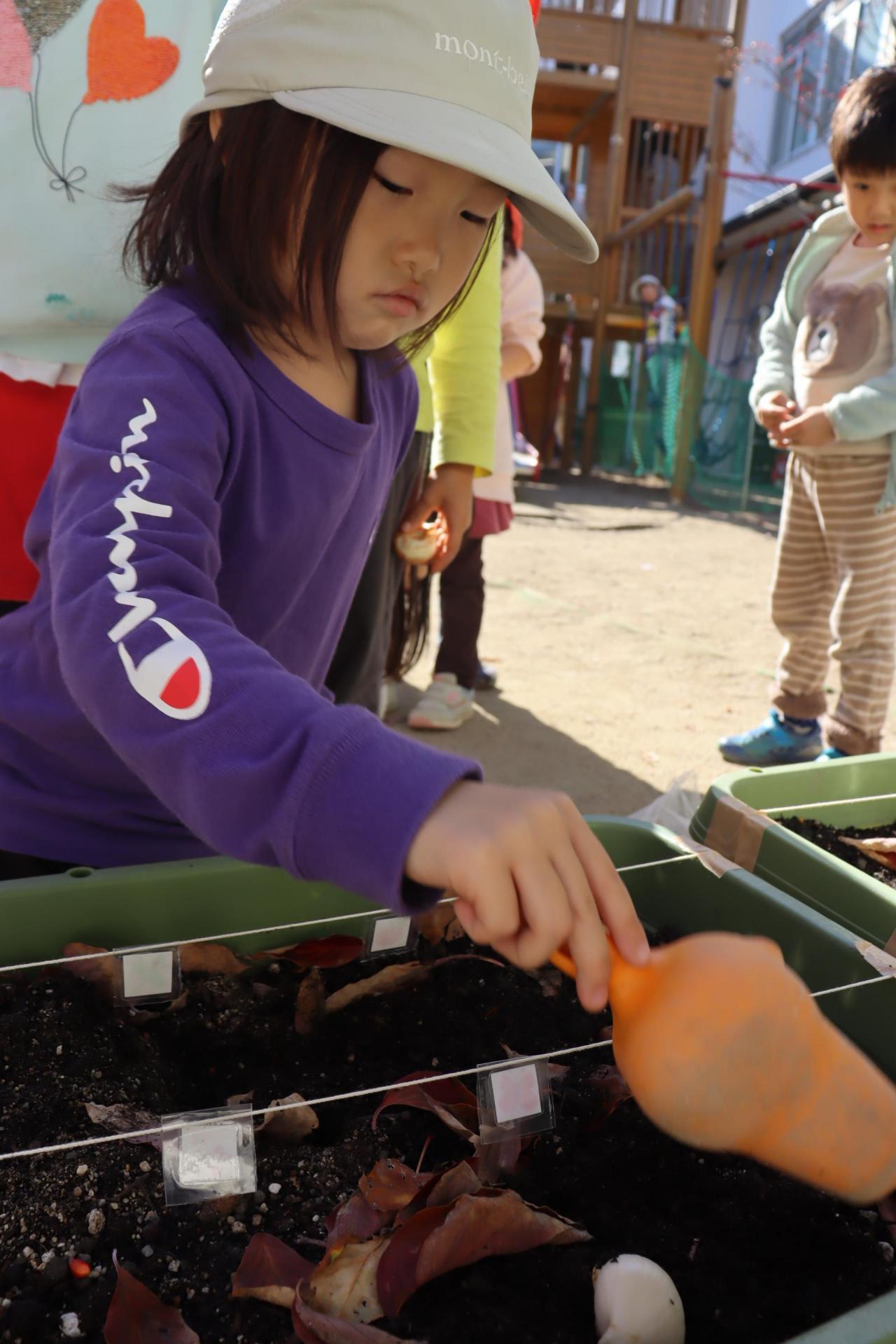 ぺんぎんさんとねずみさんはチューリップを植えました!また園庭へ成長をみにいってみてください♪