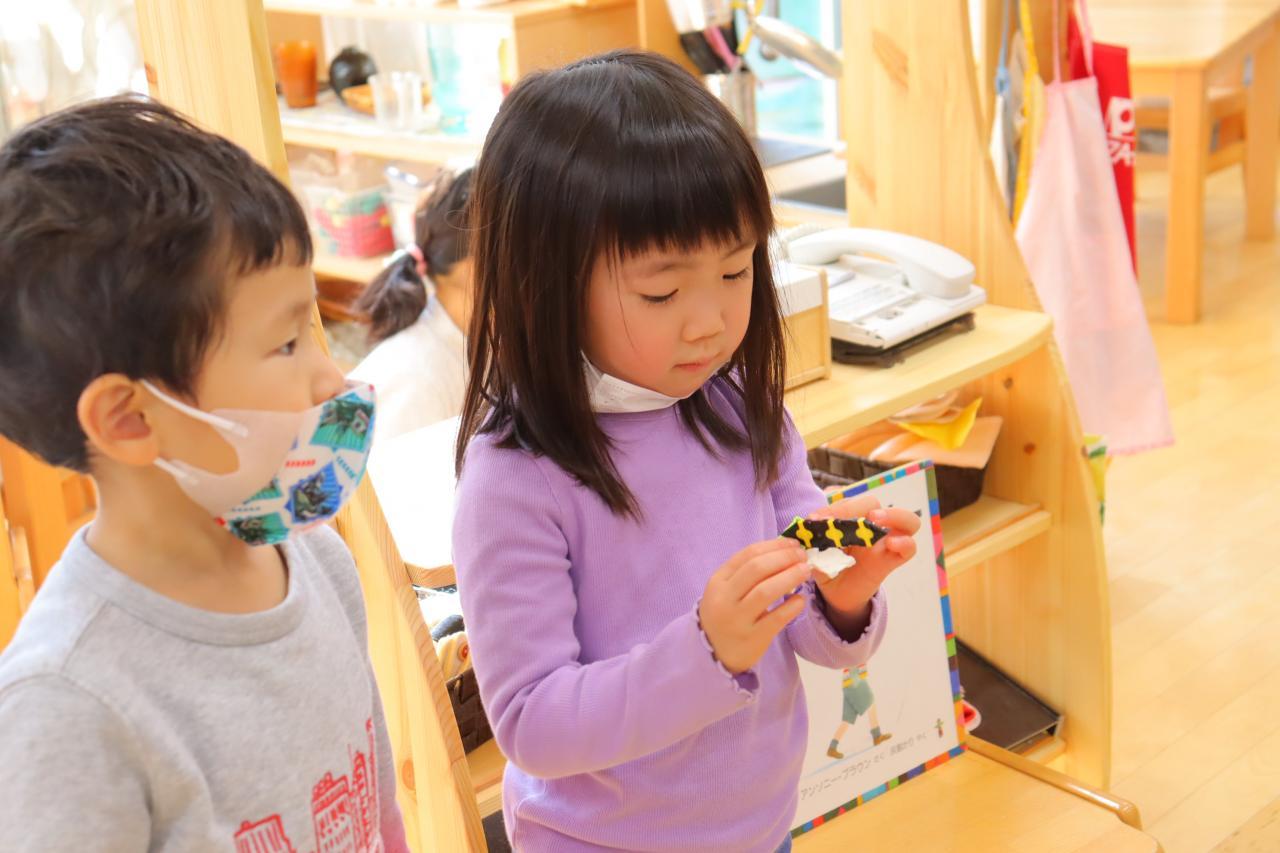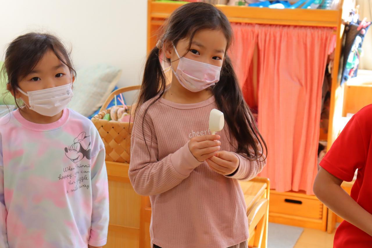 ねずみさんやぺんぎんさんも、お泊りいいなー!でも自分はまだしたくないな…なんていいながら、お泊り保育の話をしていました♪