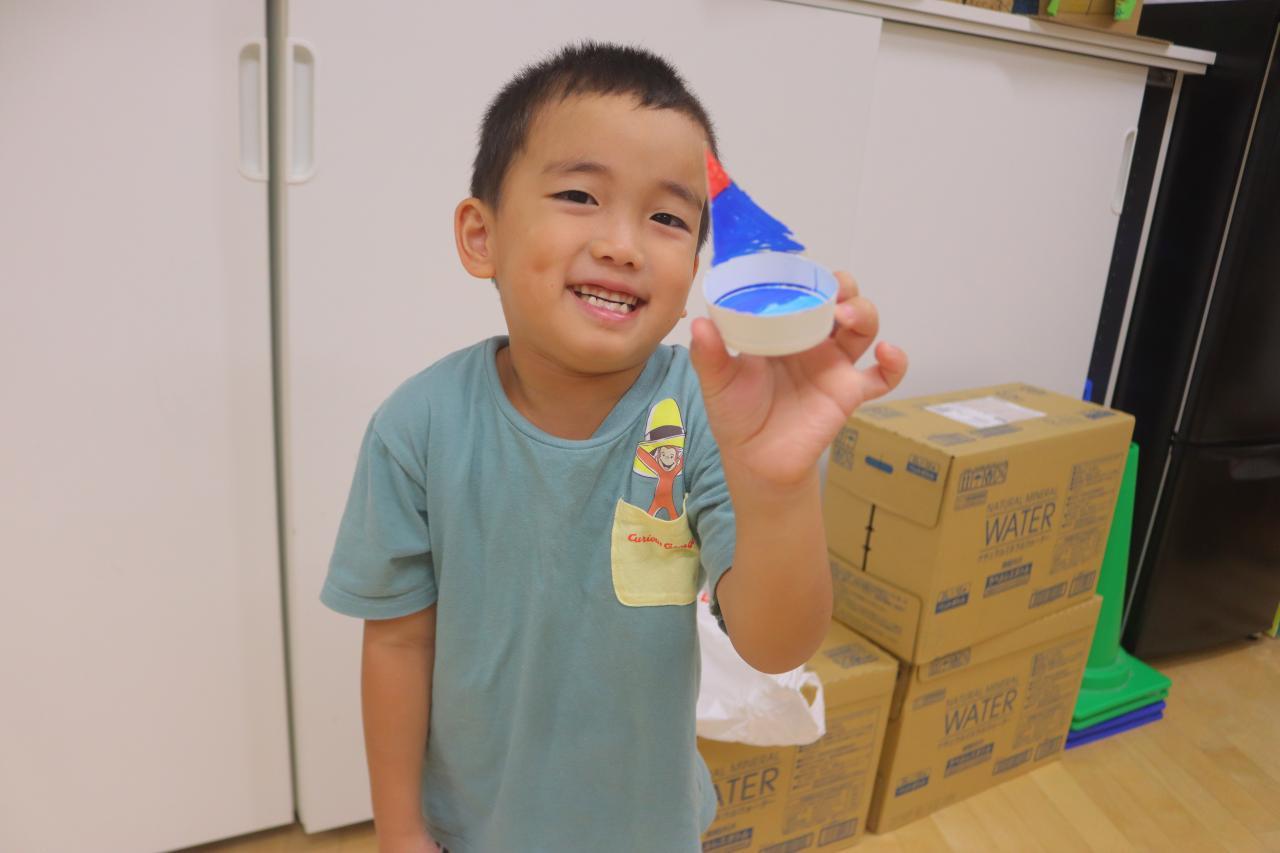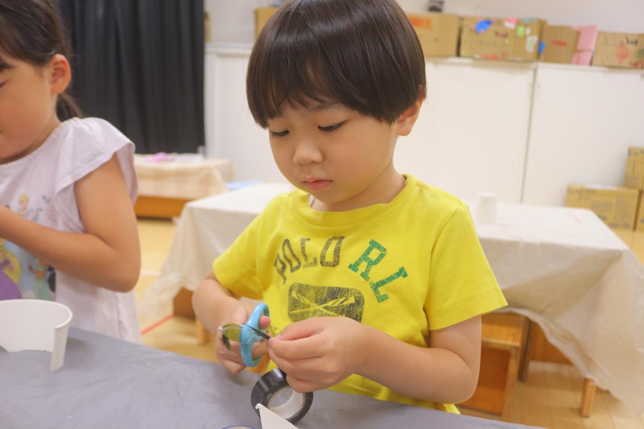 ヨットは紙コップを自分ではさみで切って作りました!紙コップの形にそって丸く切るのは少し難しく「難しいよ~!」と言っている子もいましたが、みんなとても上手にしてくれていました👏