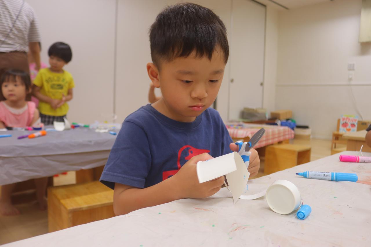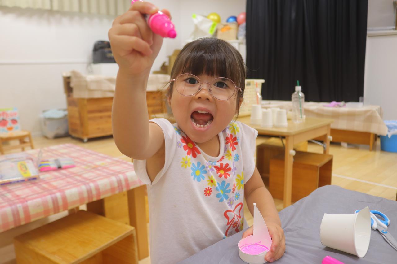 ヨットに乗せたい人やハートなどの飾り付けも作りたい子に作ってもらいました☆ヨットに乗せる人がヨットから落ちないように紙コップに貼っている子もいて素敵でしたよ😊