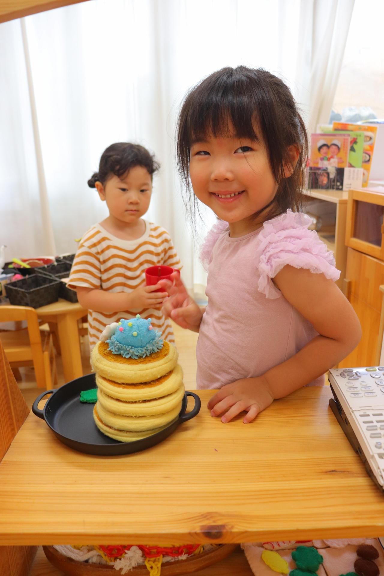 お部屋では、ラキューでいろいろなものを作ったり、塗り絵をしたり、パンケーキタワーを作ったり、、、