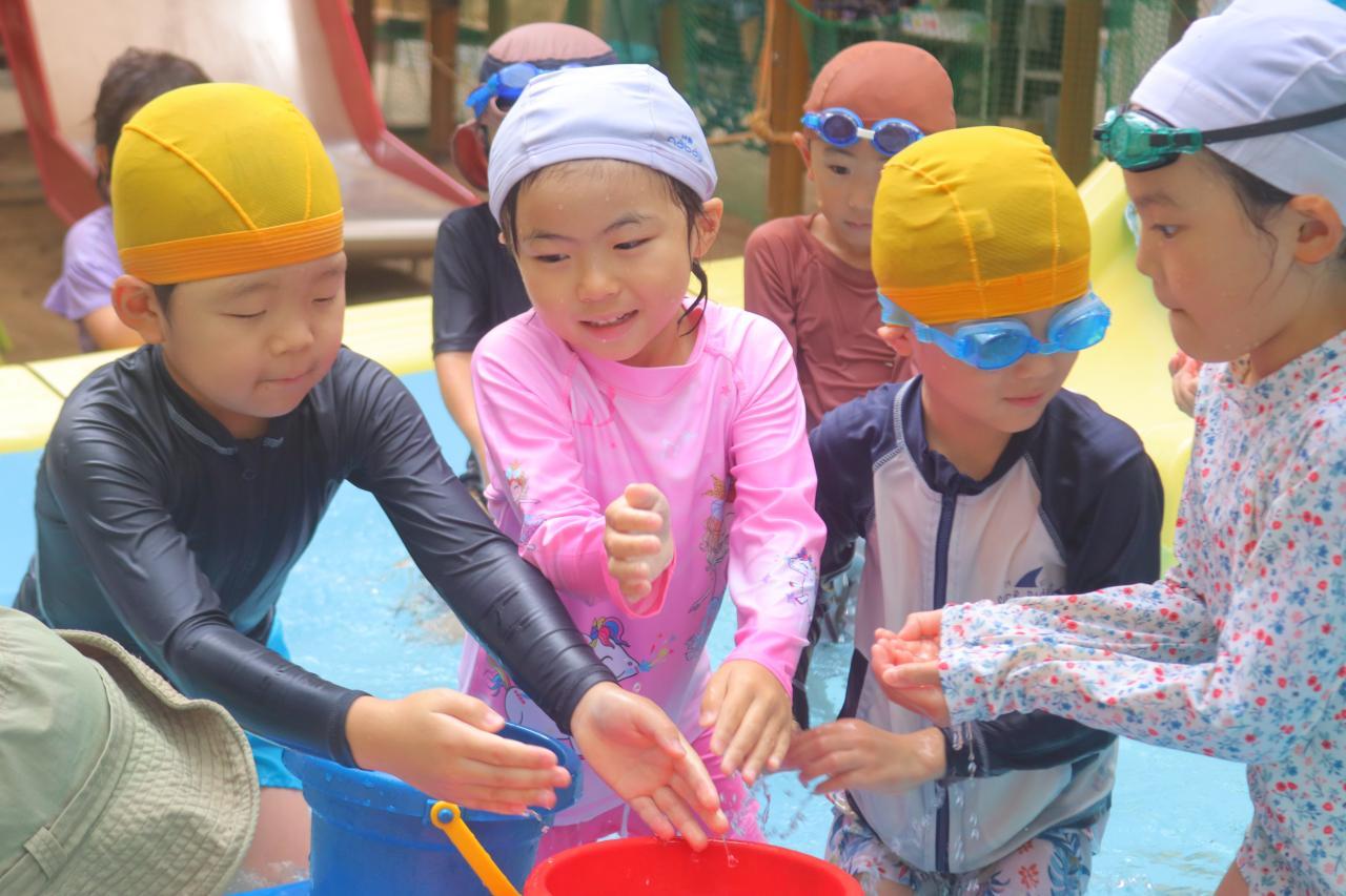 急いで何度も汲み回数を稼いで入れる子、汲む回数は少ないけどゆっくり慎重に運び確実に入れる子、