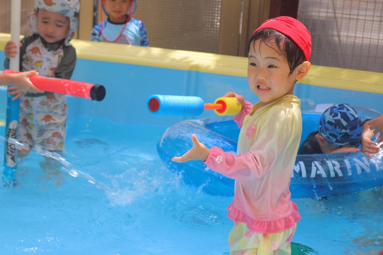 みんなが大好きな自由遊びでは、今日も浮き輪と鉄砲が大人気でしたよ~✨