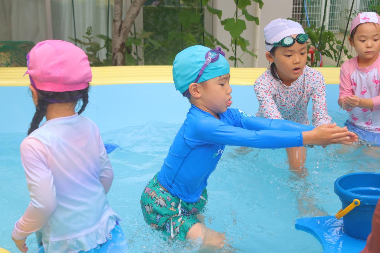 どの学年もまずは身体やお顔に水をかけてならしていきますよ~◎