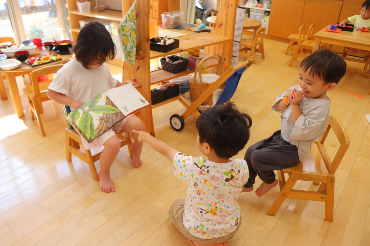 クラス名でもあるかぶとむしの絵本を読んでくれていて、とっても嬉しそうに聞きに来ていましたよ~🌟
