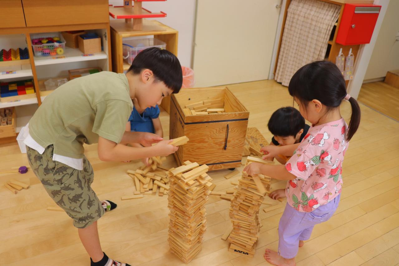 すると楽しそうに思えた周りのお友だちも次々と参戦して、どちらともとっても高く積み上げていました✨