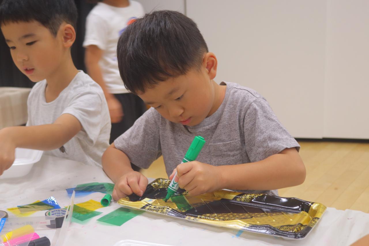 次に発砲スチロールトレーにペンやビニールテープを使って飾り付けをしました☆彡