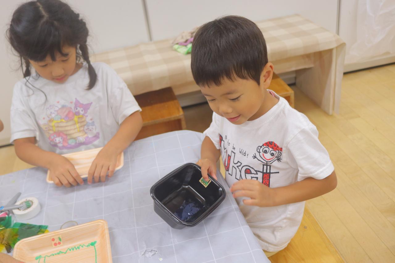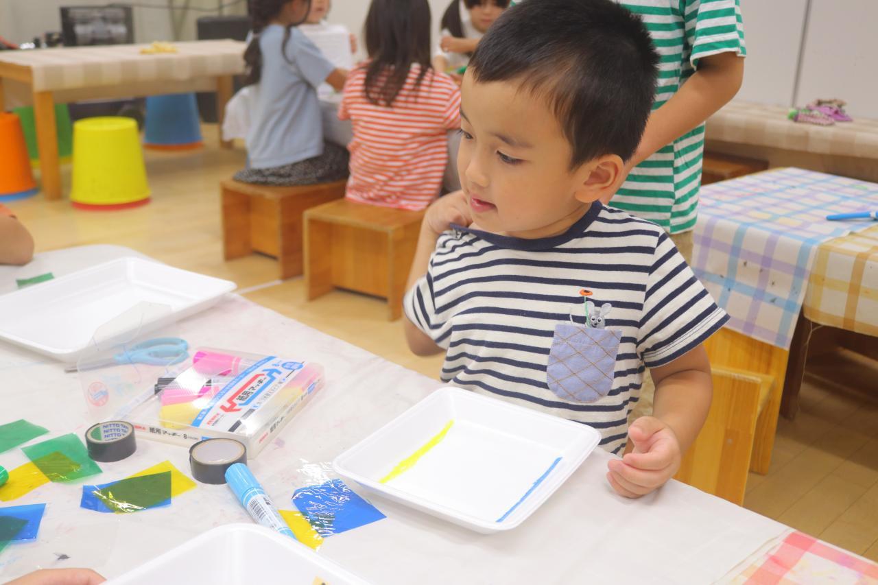 最初に好きな形の発砲スチロールトレーを子どもたちに選んでもらいました☆