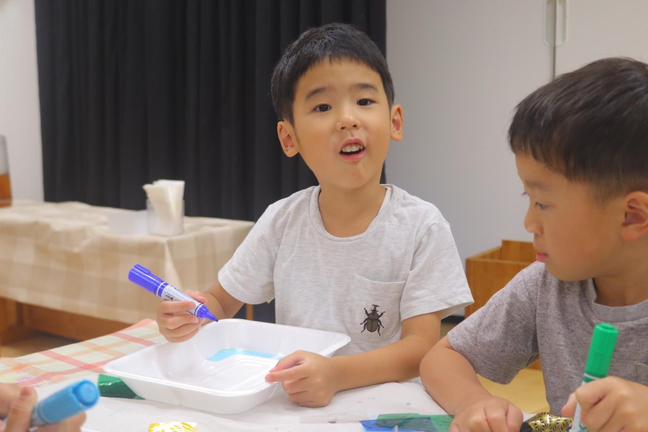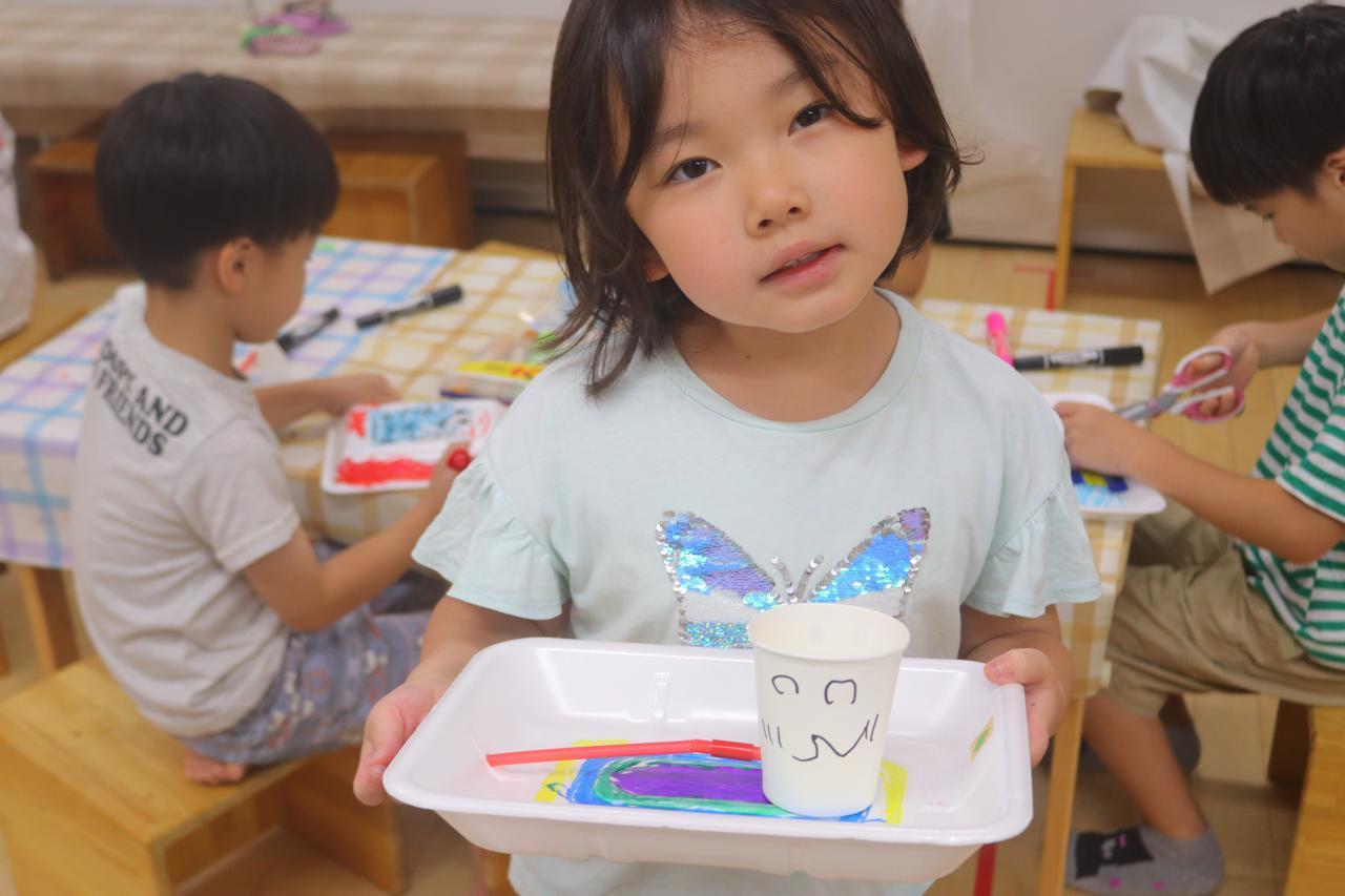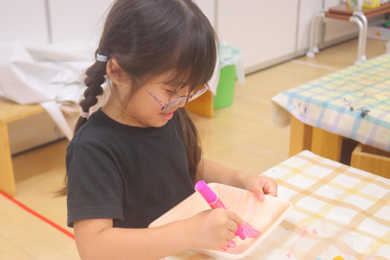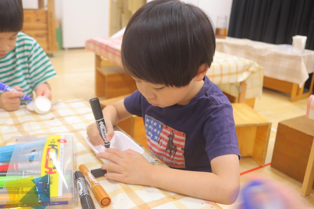 底だけ色を塗る子、側面も色を塗る子、外側の底も塗る子、子どもたちの工夫でとても素敵なボートになっていました💗