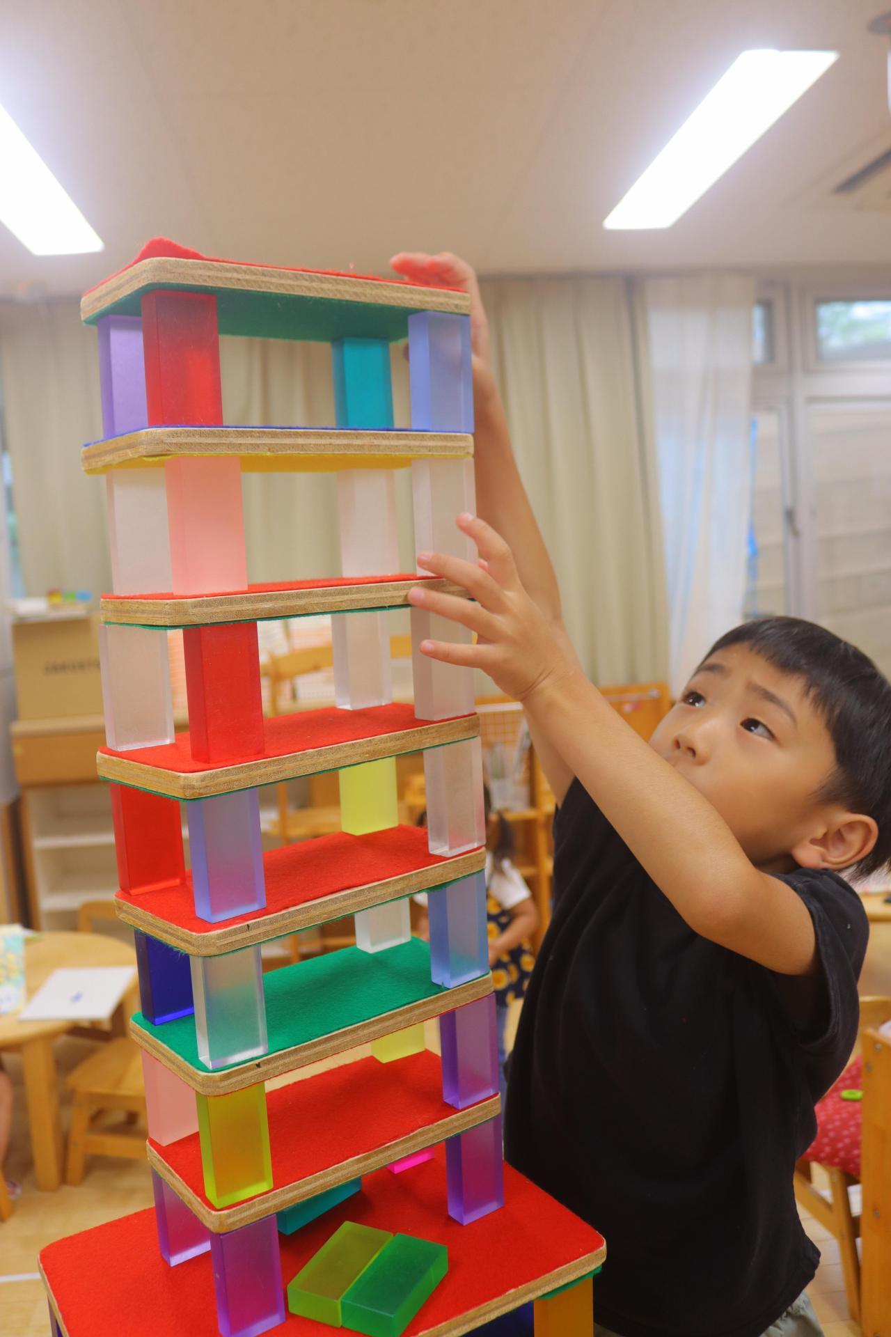 こちらはカラー板や積み木を使って高いお家はつくっていましたよ~🏠