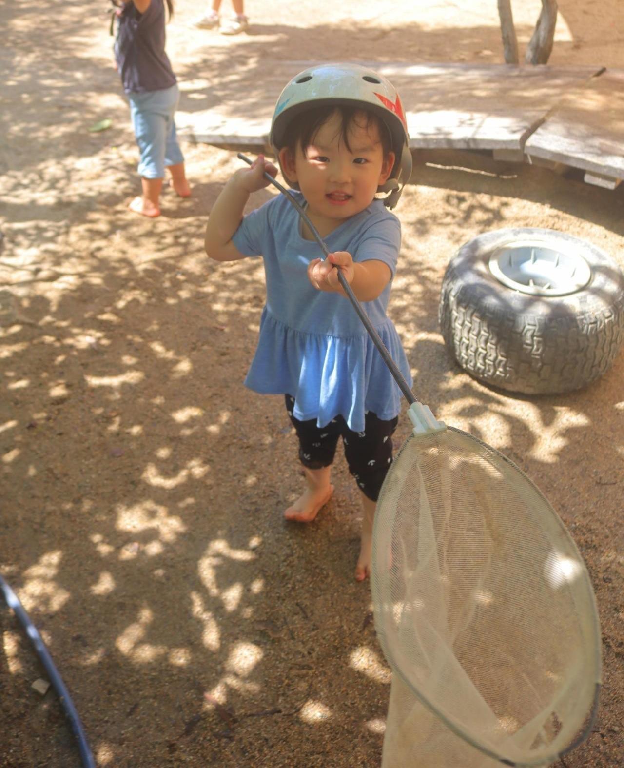虫たちも活発になり、虫探しにも生が出ます!網を使って虫探しへ出かけるのもよし!足元をよく見て素手で捕まえるもよし!のたくましい子どもたちに度々驚かされています!見つけた時のリアクションがそれぞれでとっても可愛いですよ♡