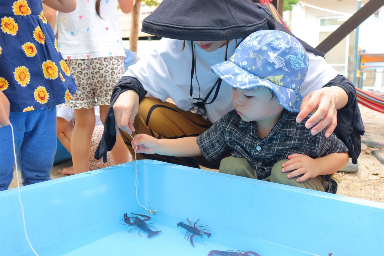 しっかりご挨拶をしてザリガニ釣りスタートです!