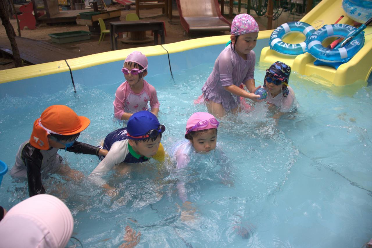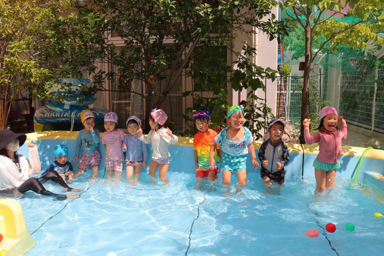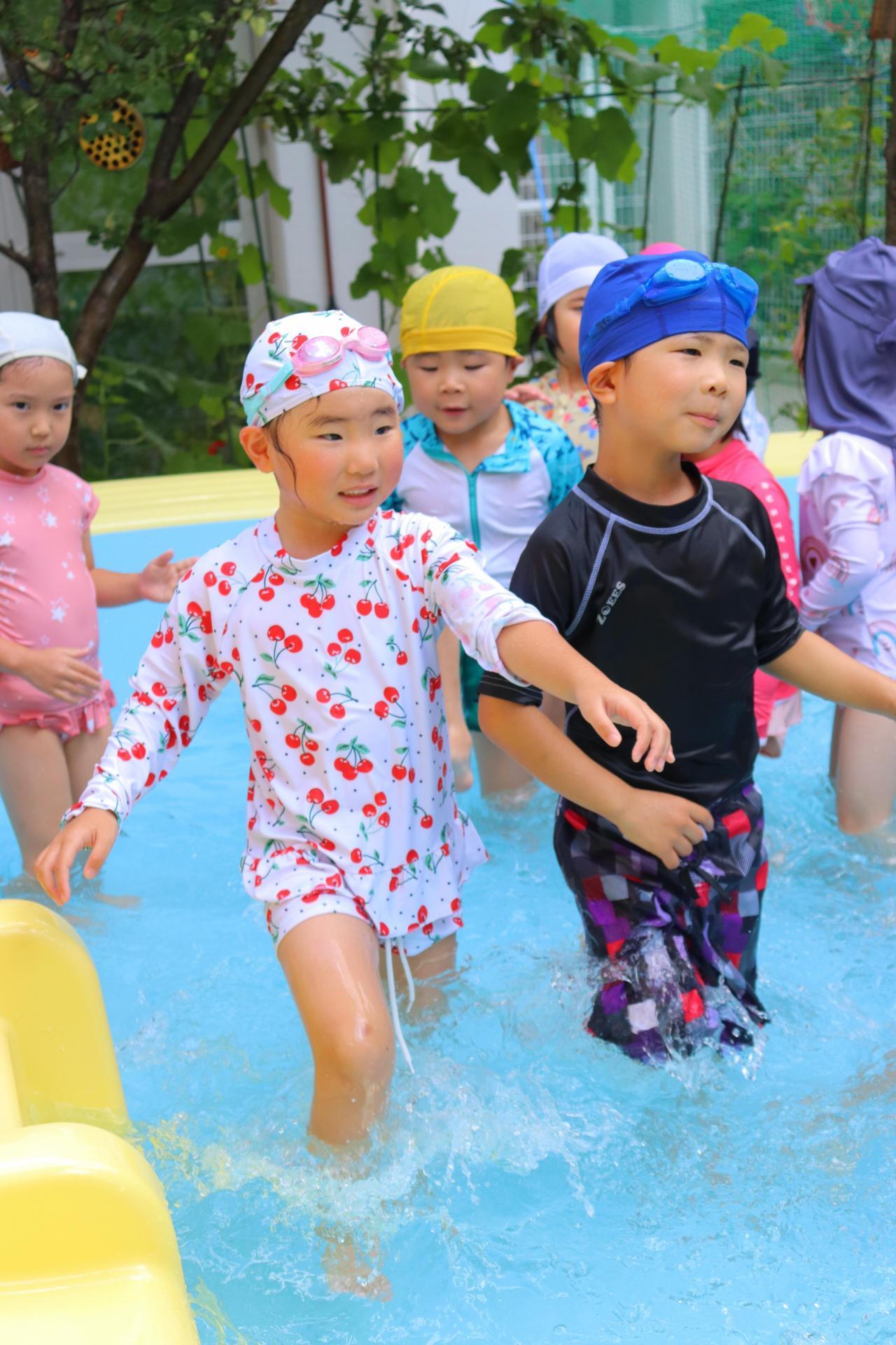 ねずみさん→ぺんぎんさん→きりんさんの順番にプールに入りました!
