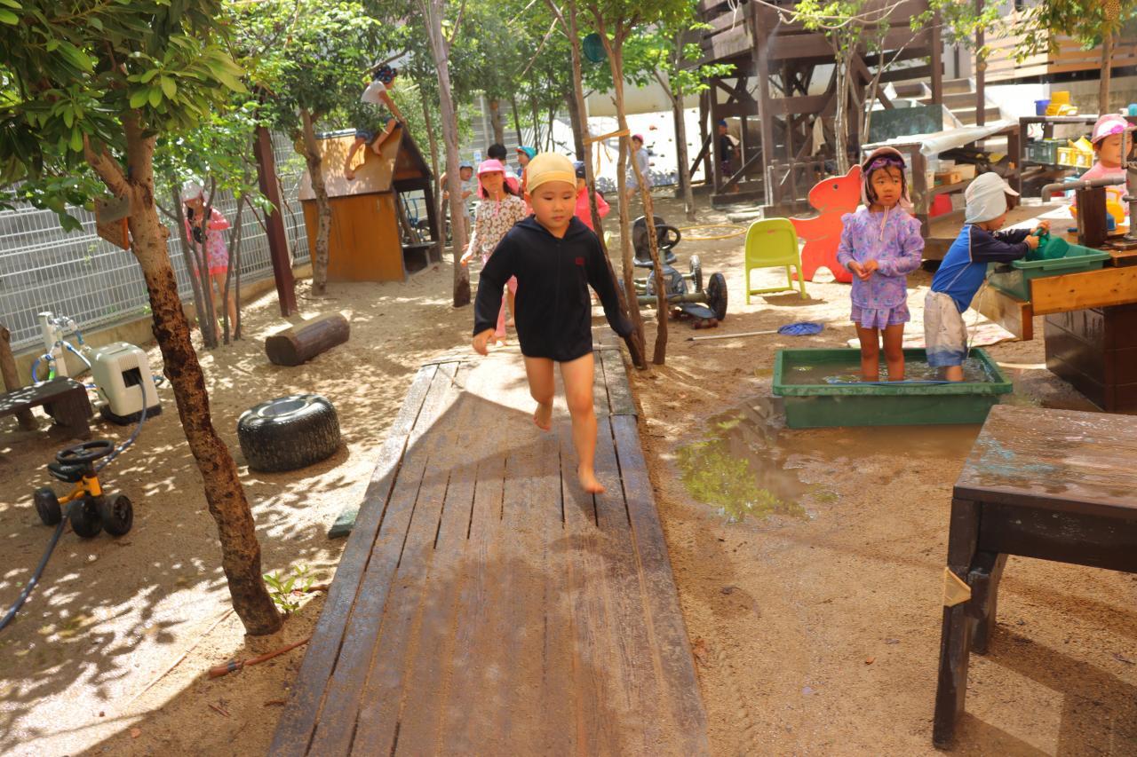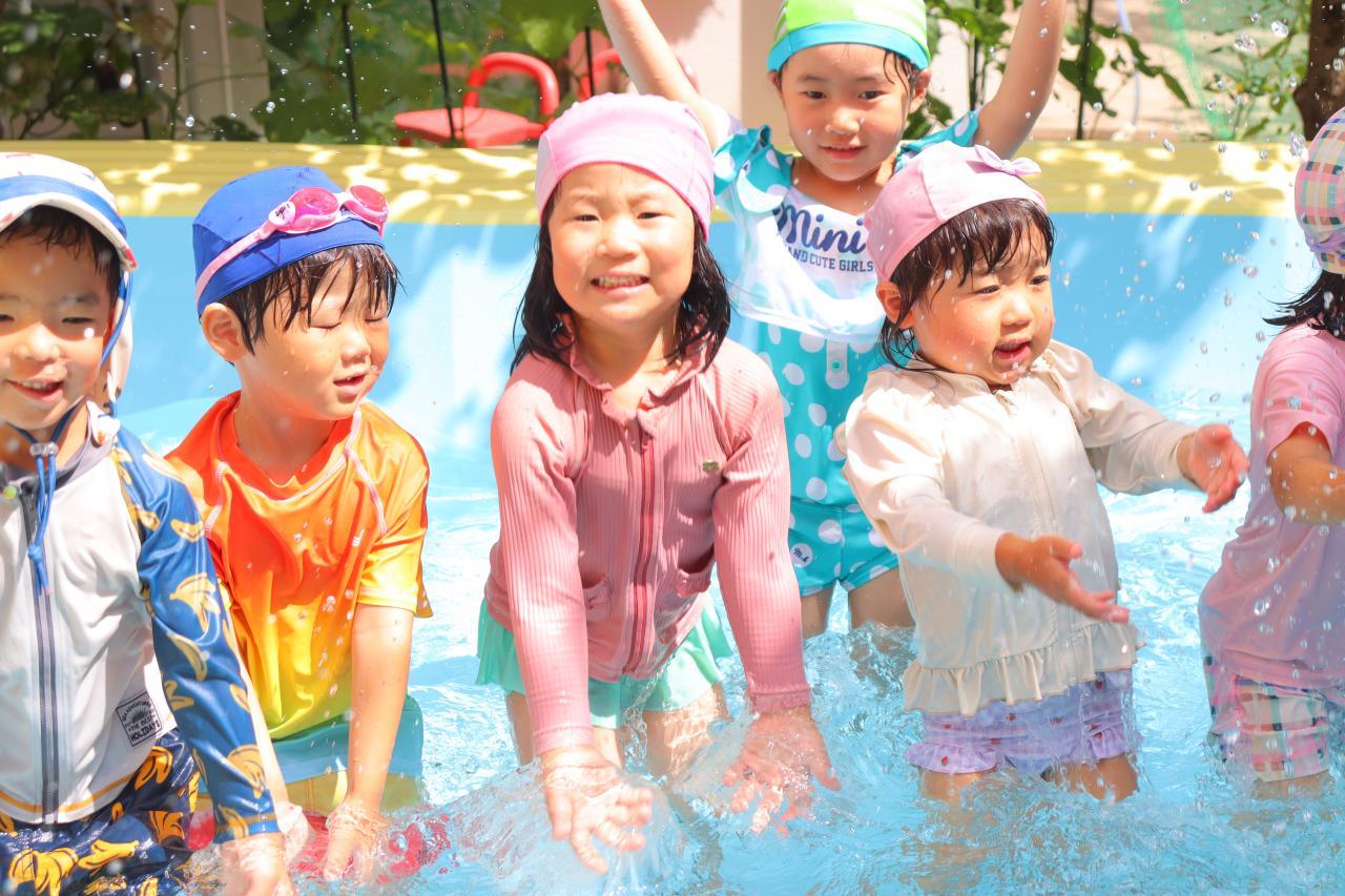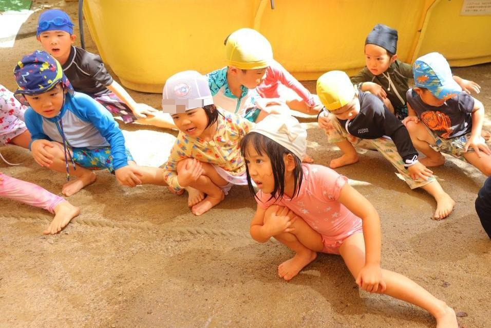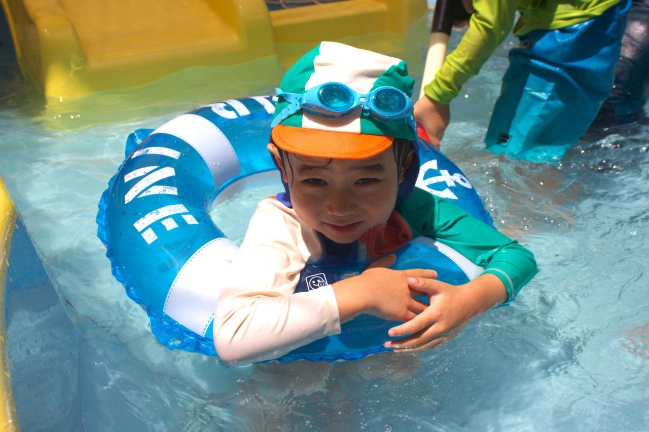 ねずみさん→ぺんぎんさん→きりんさんの順番にプールに入りました!
