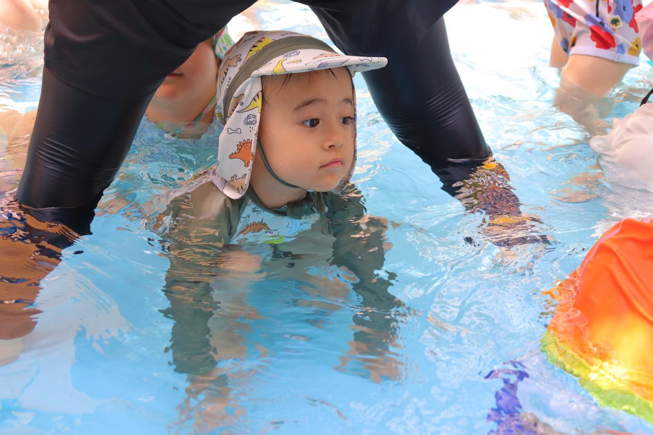 次に円を描きながら歩いたり、ワニさん泳ぎをしたり…中には顔を付けて泳いでいるお友だちもいましたよ~♪