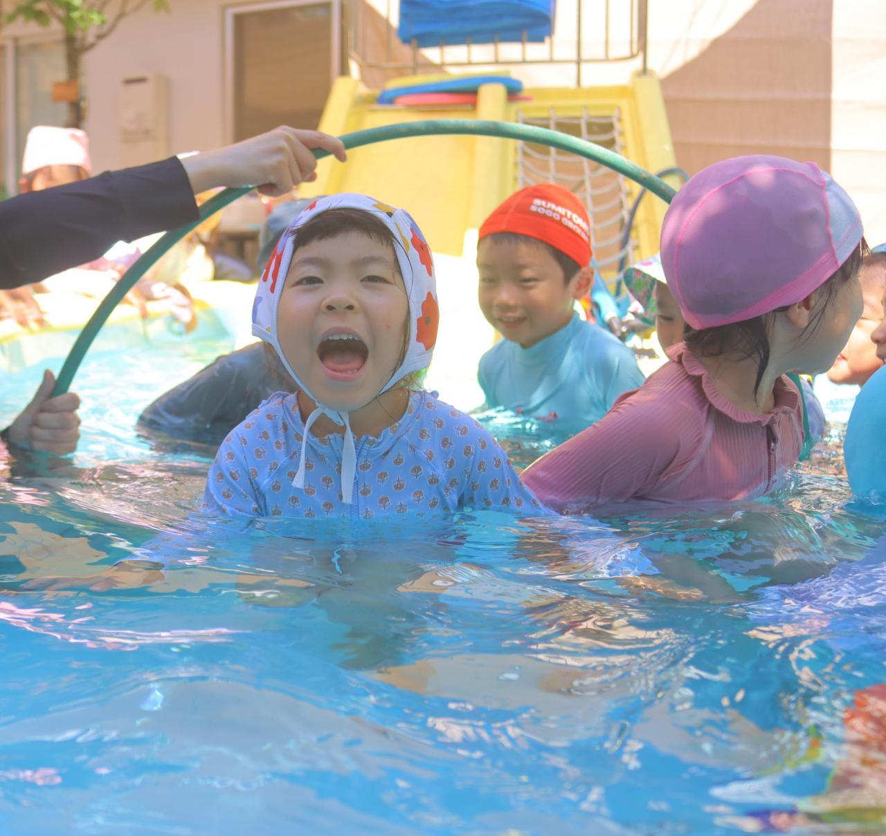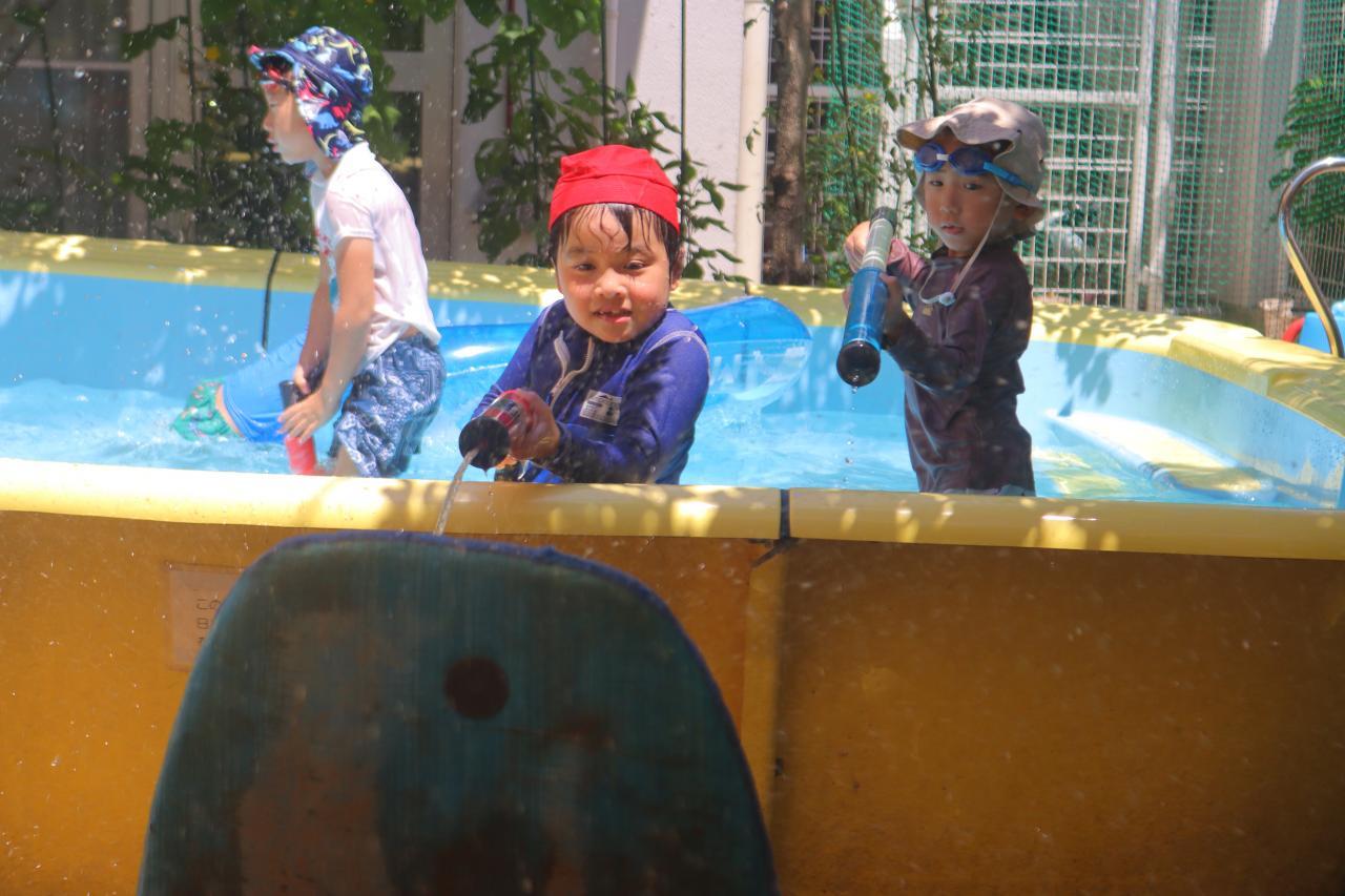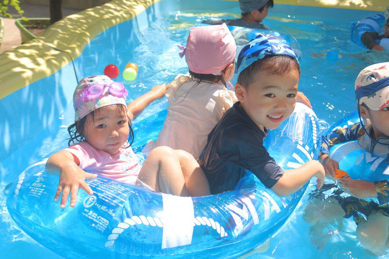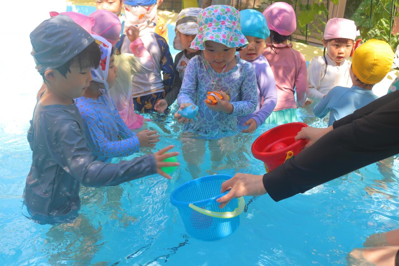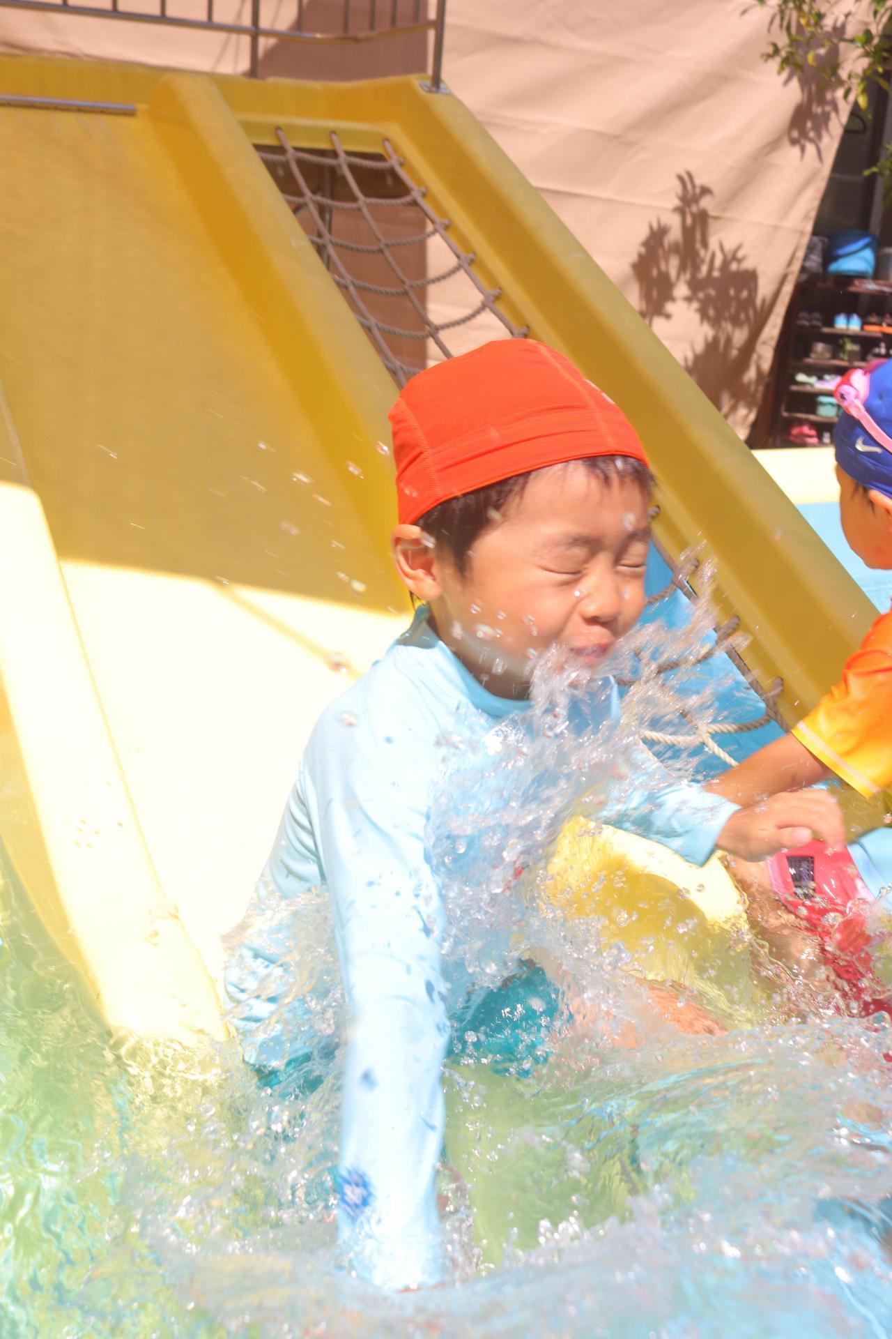 水着に着替えて、ねずみさん→ぺんぎんさん→きりんさんの順番でプールをしました!