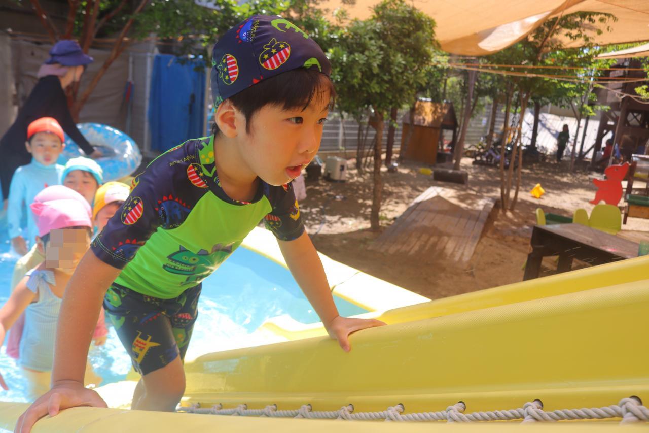 そして、どの学年も自由遊びの時間にウォータースライダーが解禁!!
