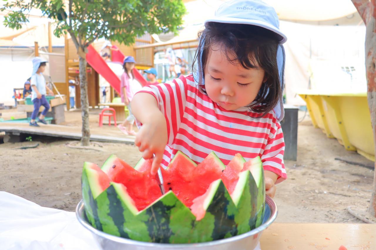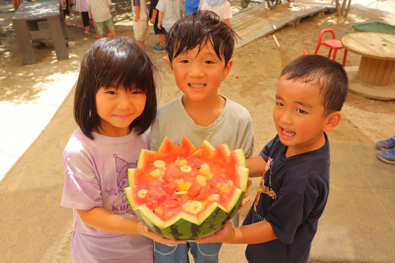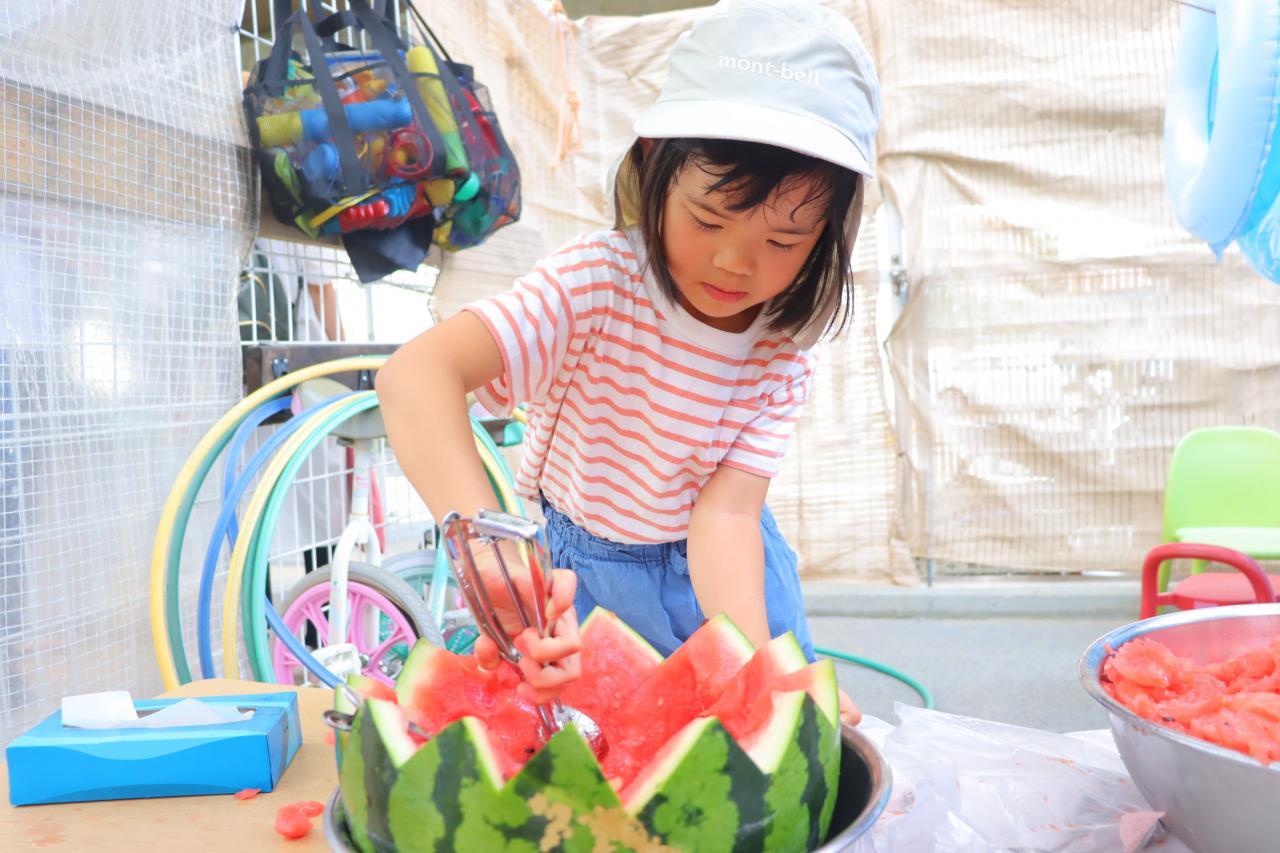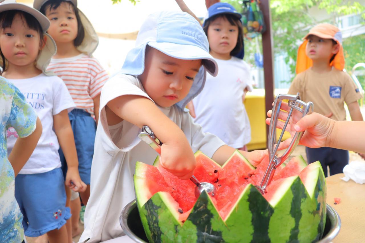 子どもたちには、スイカのくりぬき🍉、フルーツのカット、白玉団子作り、