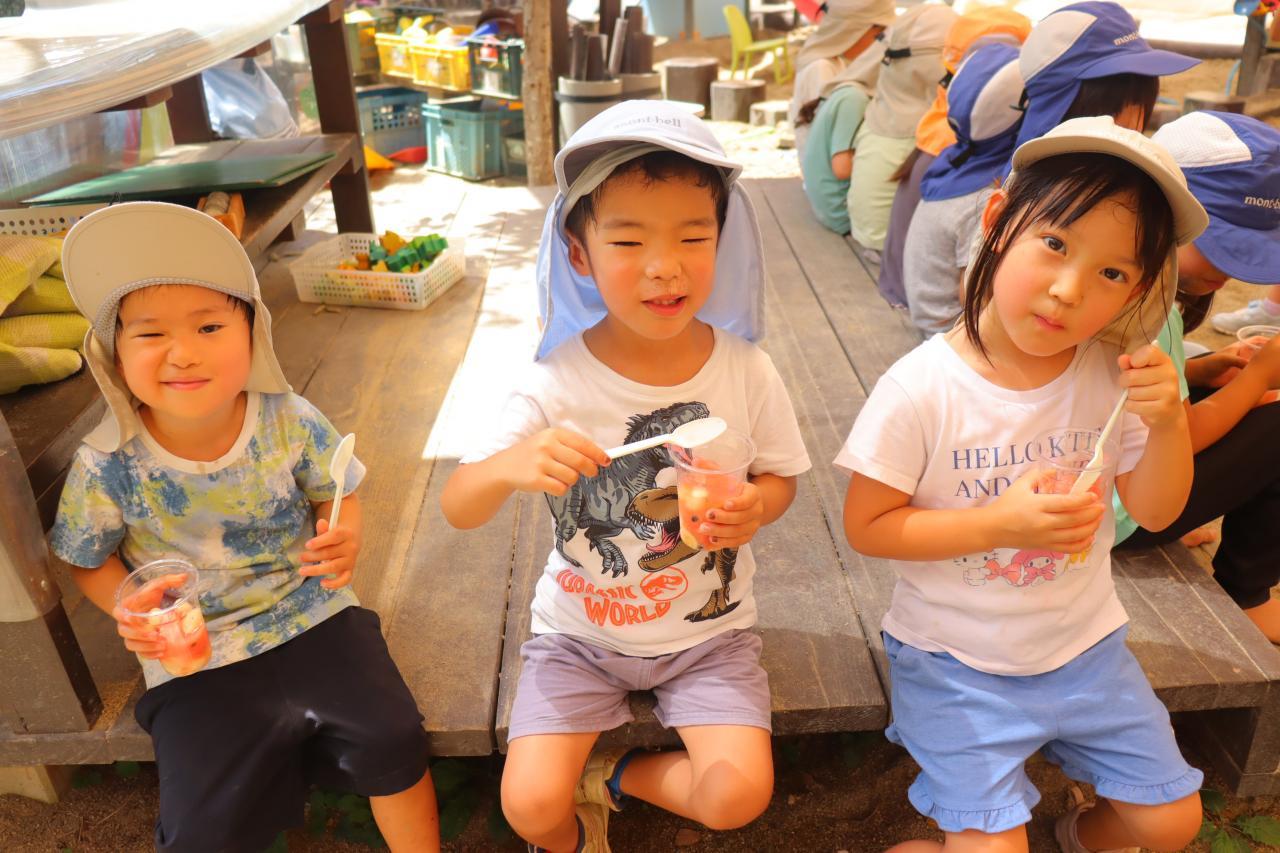 完成したフルーツポンチをペロッと美味しく食べてくれた子どもたちでした♪