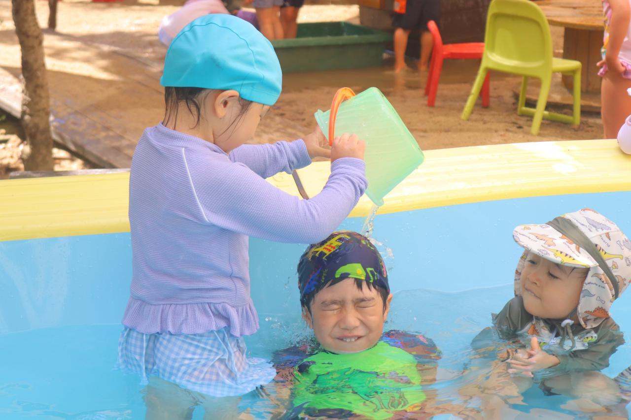 まだお水が怖いお友だちには優しくお水をかけたり、お友だちの事を応援したり、