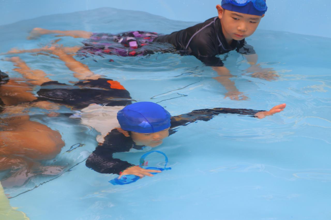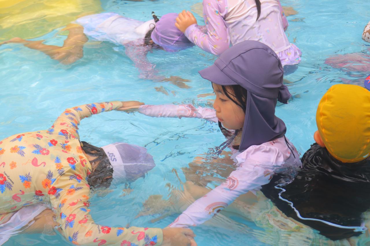 2人で手を繋いで潜ってたり、伏し浮きにチャレンジしてみたりしました!