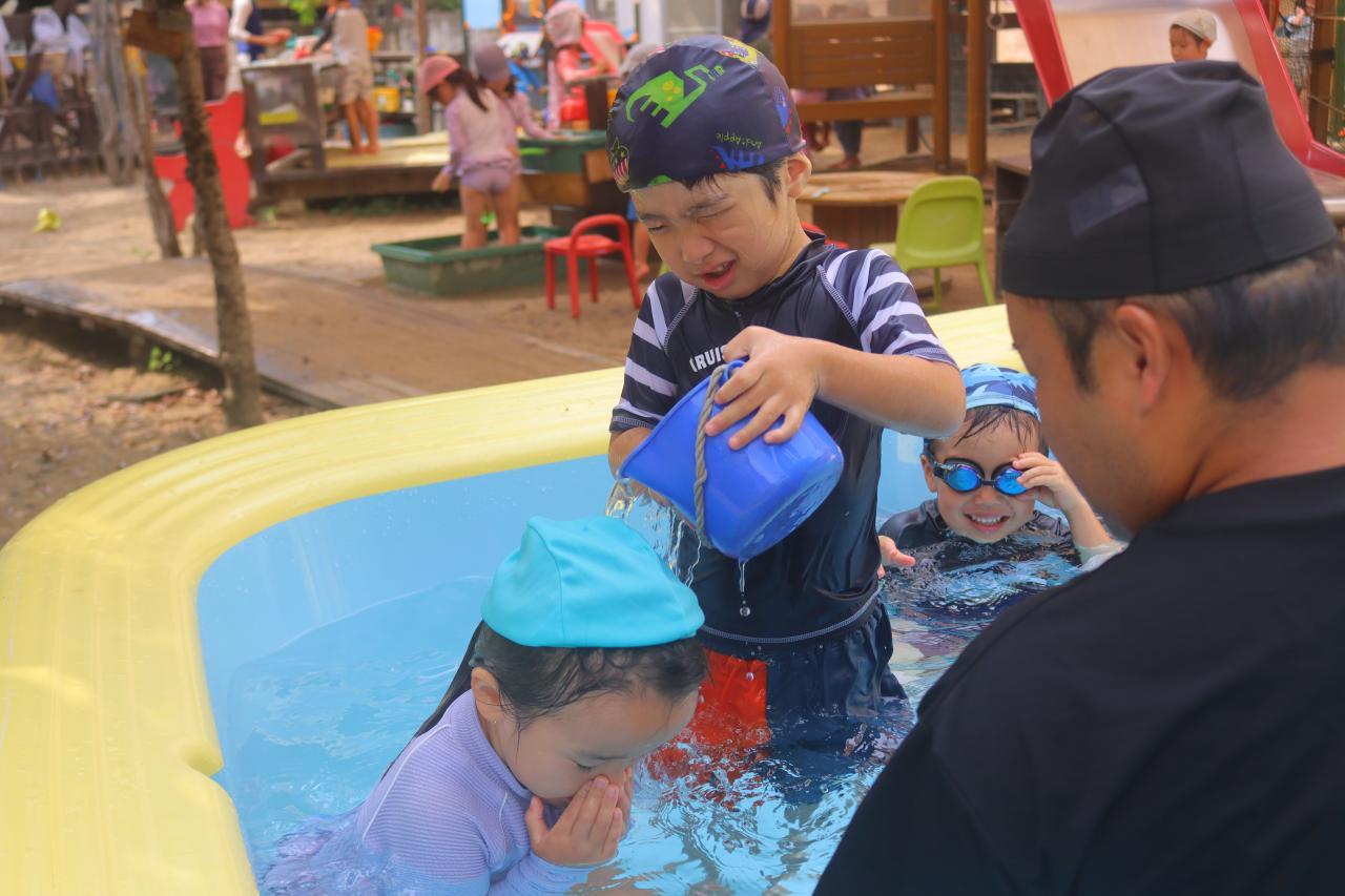 今日の体育指導もプールに入りました。
