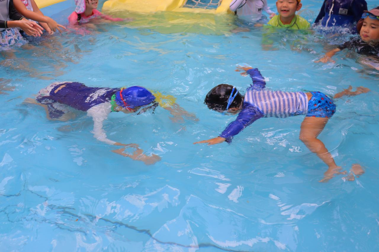 きりんさんはクラスごとで誰が一番お顔を長くつけられるかの対決をした後に、各クラスで1番長くつけれたお友だち同士で、最後に対決!結果はザリさんのお友だちの方が長くつけることができて、ザリさんの勝利☆カブさんのお友だちもとっても長くつけていてかっこよかったですよ~✨